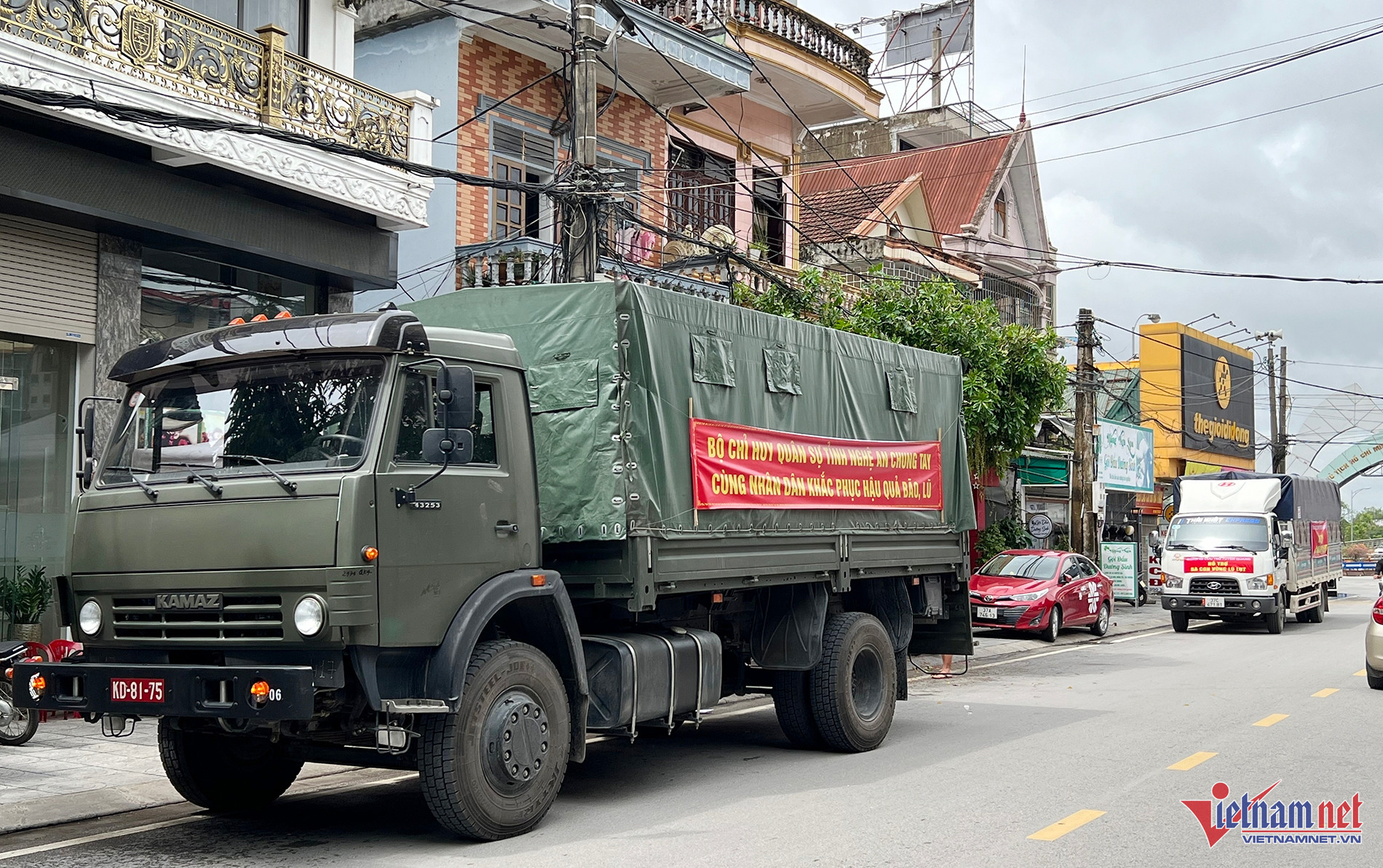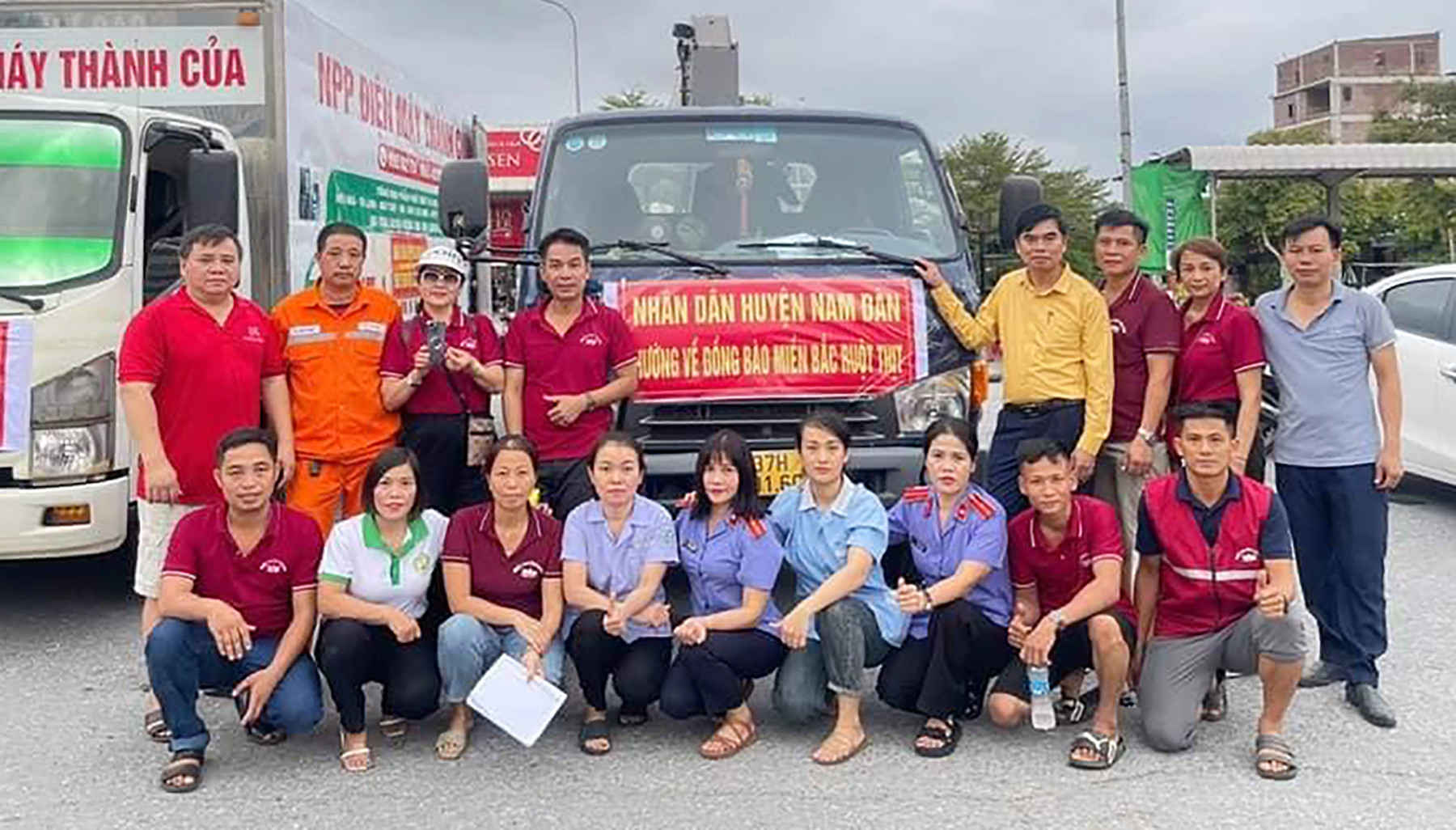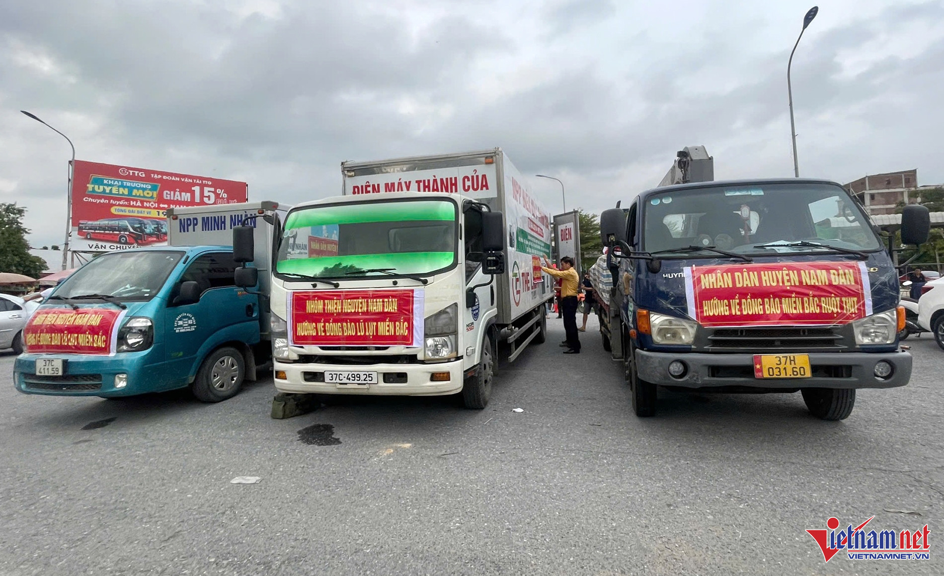 Các huyện, thị ở Nghệ An cũng có nhiều chuyến xe tải chở hàng hóa cứu trợ của các nhóm, hội tự phát lên đường hướng về đồng bào miền Bắc.