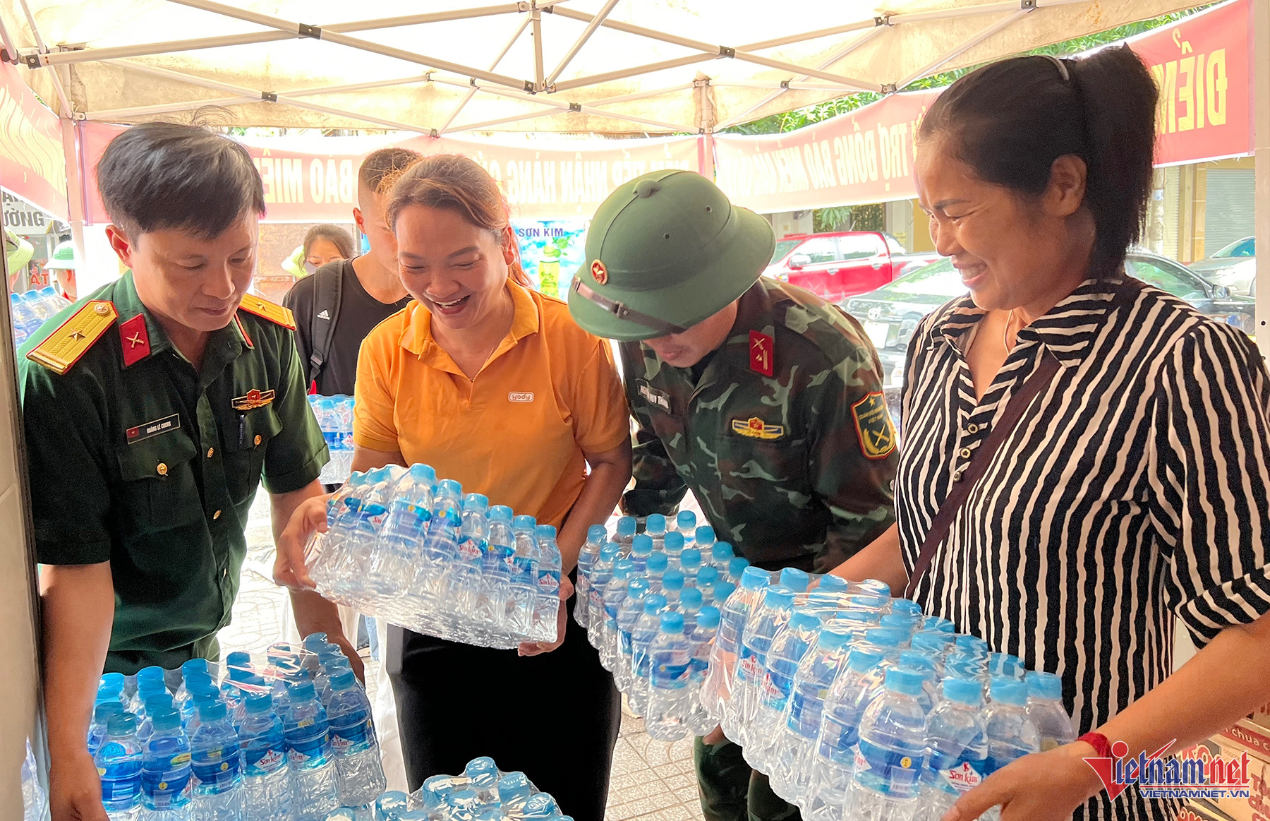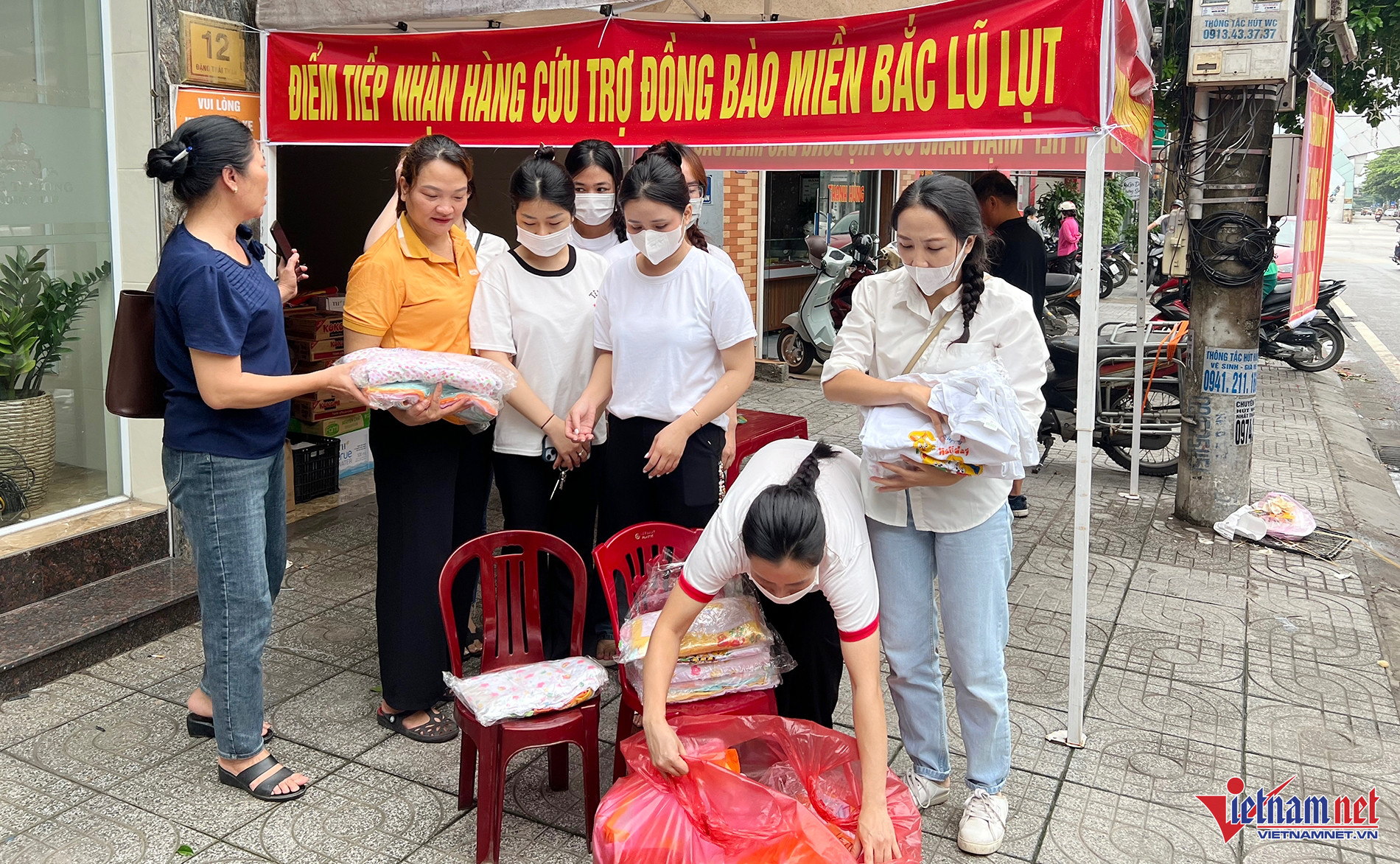 Nhiều người dân tới đây, không ai bảo ai, tự động cùng nhau sắp xếp hàng hoá đưa lên xe tải. Trong khi có rất nhiều cá nhân đến ủng hộ nhu yếu phẩm, tiền mặt cho đồng bào các tỉnh thành miền Bắc.