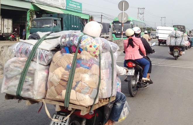 Những chiếc xe máy chở hàng cồng kềnh quá tải, quá khổ chạy vù vù trên quốc lộ ở miền Tây khiến nhiều người thót tim. Nhiều vụ tai nạn được ghi nhận từ thực trạng này.
