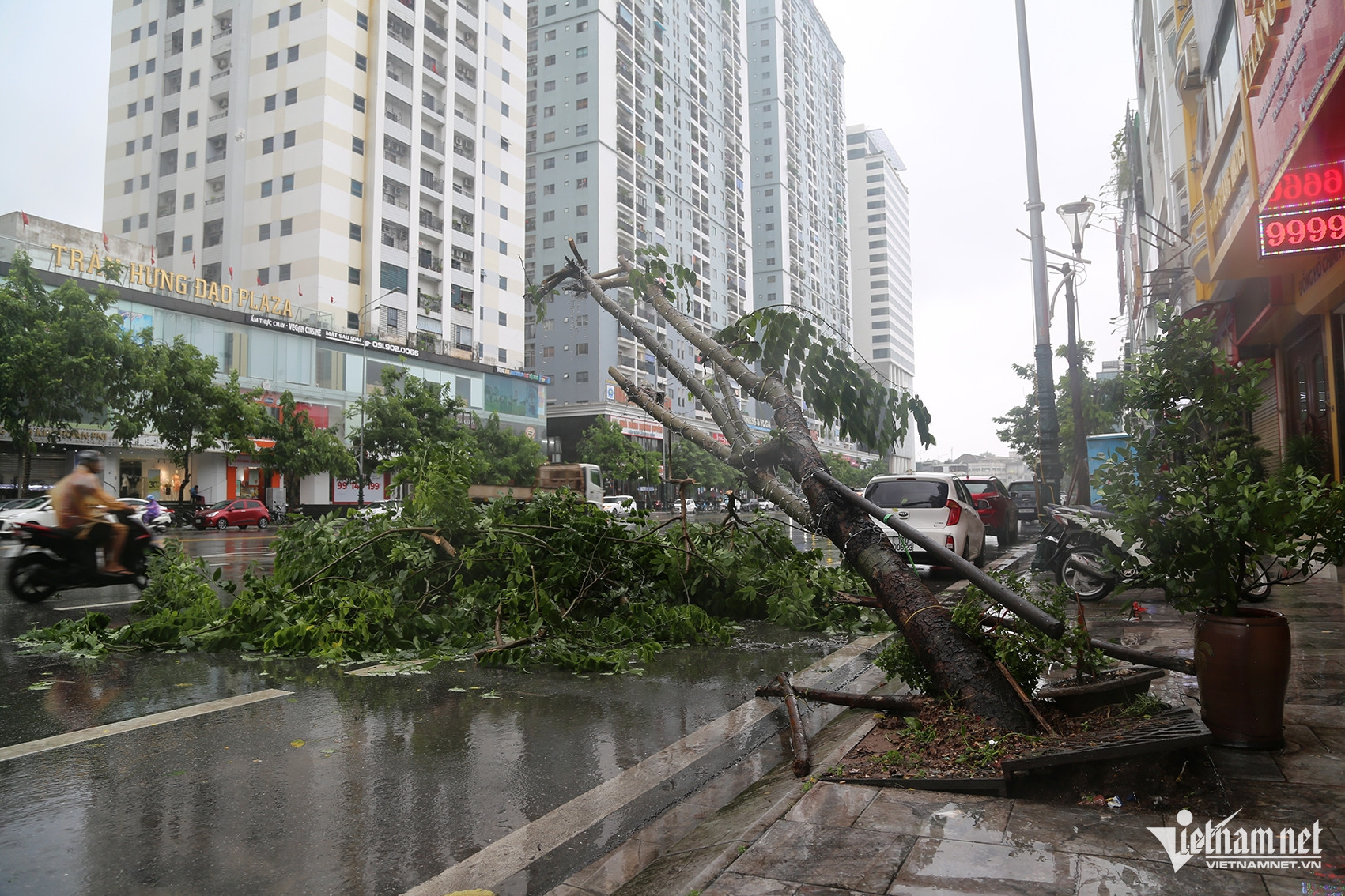 Ghi nhận của PV vào sáng 23/7, tại TP Hạ Long, các tuyến phố chính như Trần Quốc Nghiễn, Trần Hưng Đạo, Hạ Long, Hồng Hà... có hàng loạt cây xanh gãy, đổ ra đường cản trở giao thông.