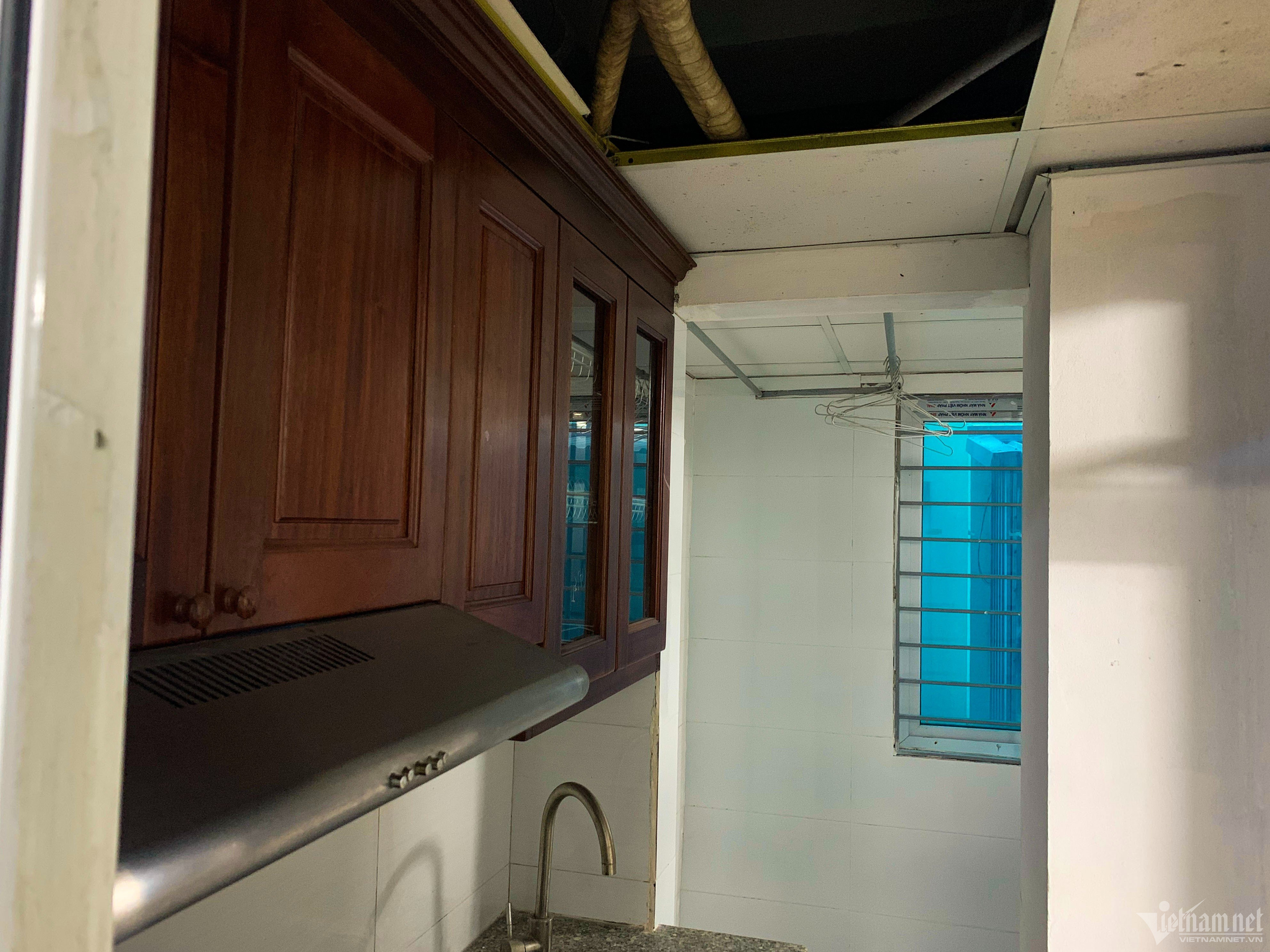 Căn này cũng như các căn khác trong ngôi nhà ống bị lắp đặt "chuồng cọp" kín. Nơi thoáng đãng nhất là khu vực giếng trời chủ đầu tư lại thiết kế làm nơi treo cục nóng điều hoà. "Gần như cả 3 mặt đều không có lối thoát nếu không may xảy ra sự cố", anh Trung chia sẻ.