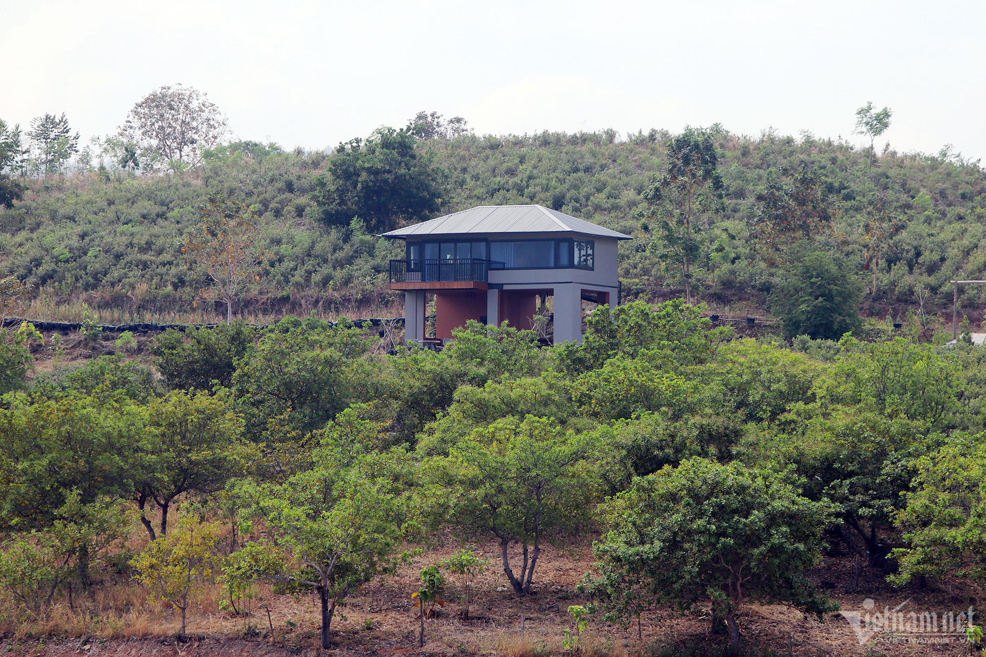 Nhìn trên cao xuống, nhiều mảng đất đá bị xé toạc, đường sá bằng bê tông được xây kiên cố theo đồi ngoằn ngoèo. Theo ghi nhận của P.V, trong số 8 công trình nói trên có 4 công trình nằm cách mép nước lòng hồ Trà Co chưa đầy 30m2..Quanh khu đất được quây rào sắt, phía ngoài là cổng gỗ cao, đặt camera theo dõi.