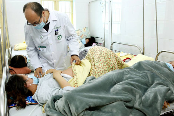 | Thai phụ đang điều trị sởi tại BV Bạch Mai |