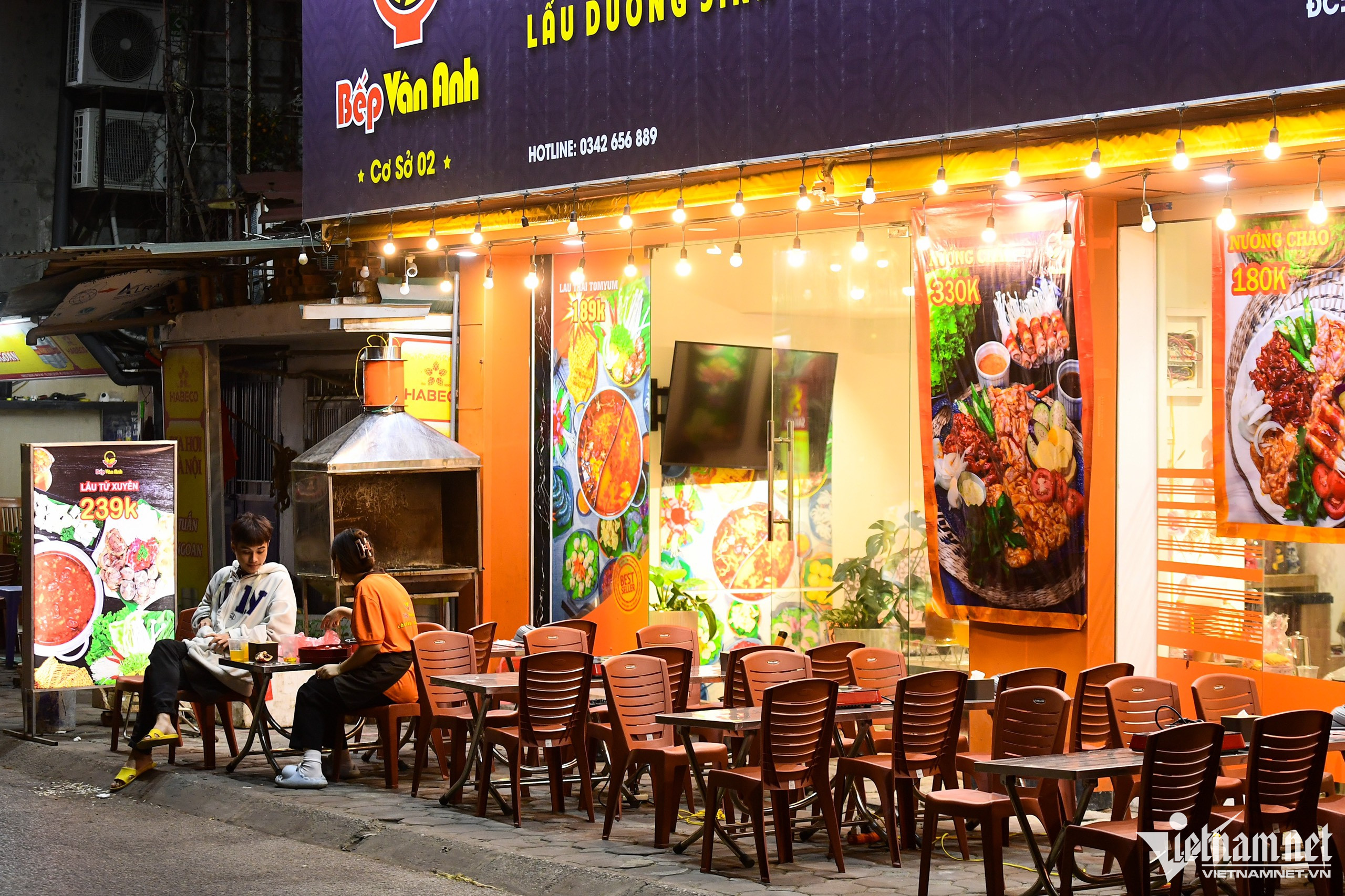 Quán nướng, bia hơi trên các phố Nguyễn Văn Tuyết (Đống Đa), Láng (Đống Đa) và Nguyễn Văn Huyên (Cầu Giấy) cũng không bóng khách vào giờ ăn tối. Nhân viên ngồi bấm điện thoại, tán gẫu giết thời gian. Vỉa hè phía trước trở thành chỗ đỗ xe của những người vào quán cà phê bên cạnh.