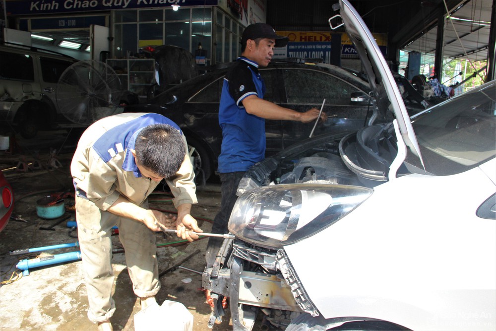 Các gara đều phải tăng cường thêm thợ để kịp sửa cho khách. Ảnh: Quang An