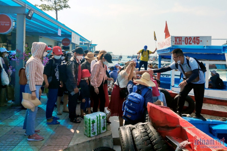 Ngày 10/4, Khánh Hòa nắng ấm. Từng đoàn xe từ sáng sớm cấp tập đưa người dân địa phương và du khách tới Bến tàu Du lịch tại phường Vĩnh Trường. Khu vực hành lang và ghế chờ, hàng nghìn khách du lịch chờ đến giờ xuất bến tham quan các đảo trên vịnh Nha Trang. Hầu hết du khách đeo khẩu trang phòng chống Covid-19.