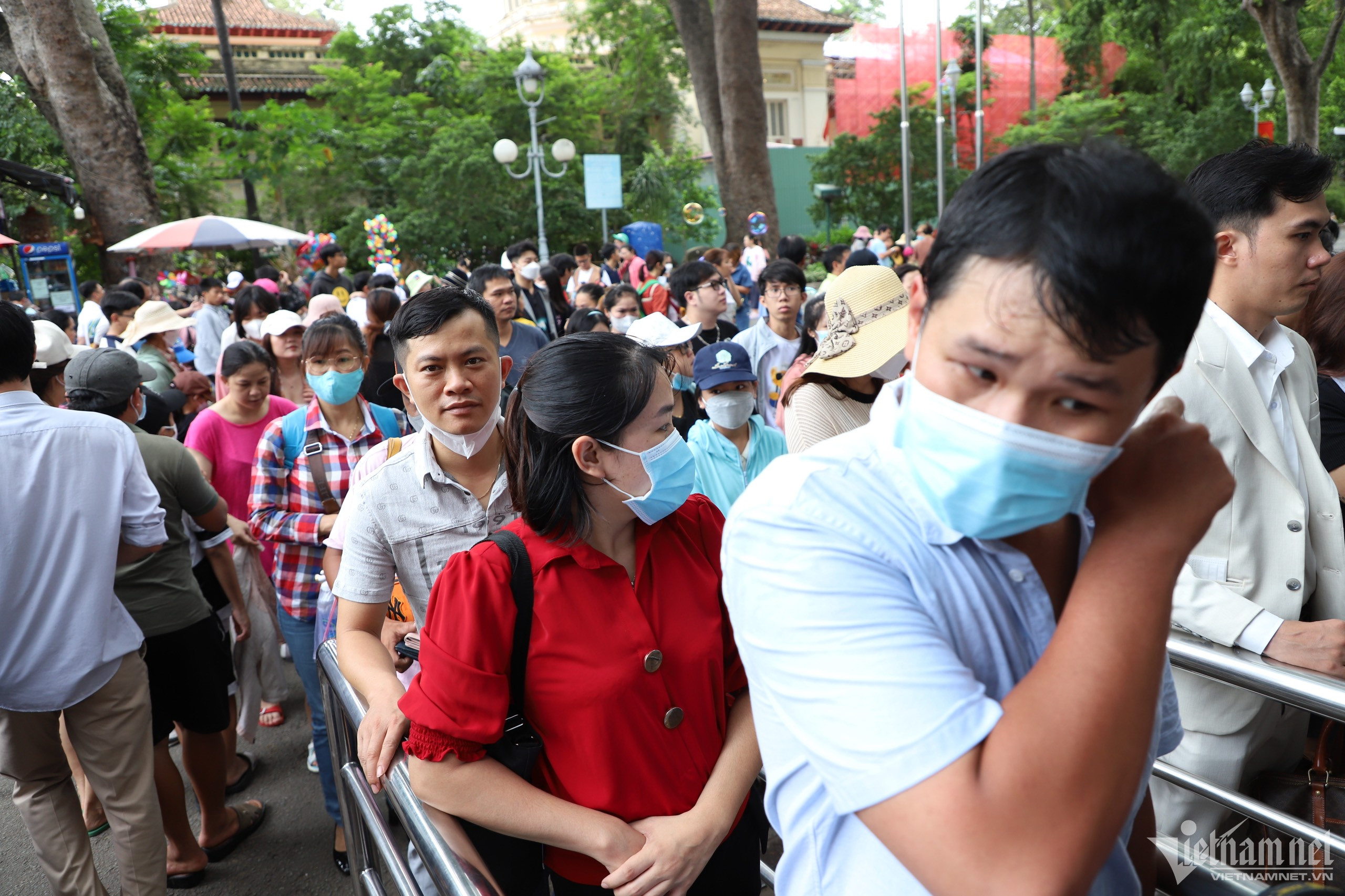 8h30 sáng 1/9, ngày đầu kỳ nghỉ lễ Quốc khánh 2/9, người dân đổ về Thảo Cầm Viên, TP.HCM rất đông. Nhiều người kiên nhẫn đứng xếp hàng chờ mua vé qua cổng.