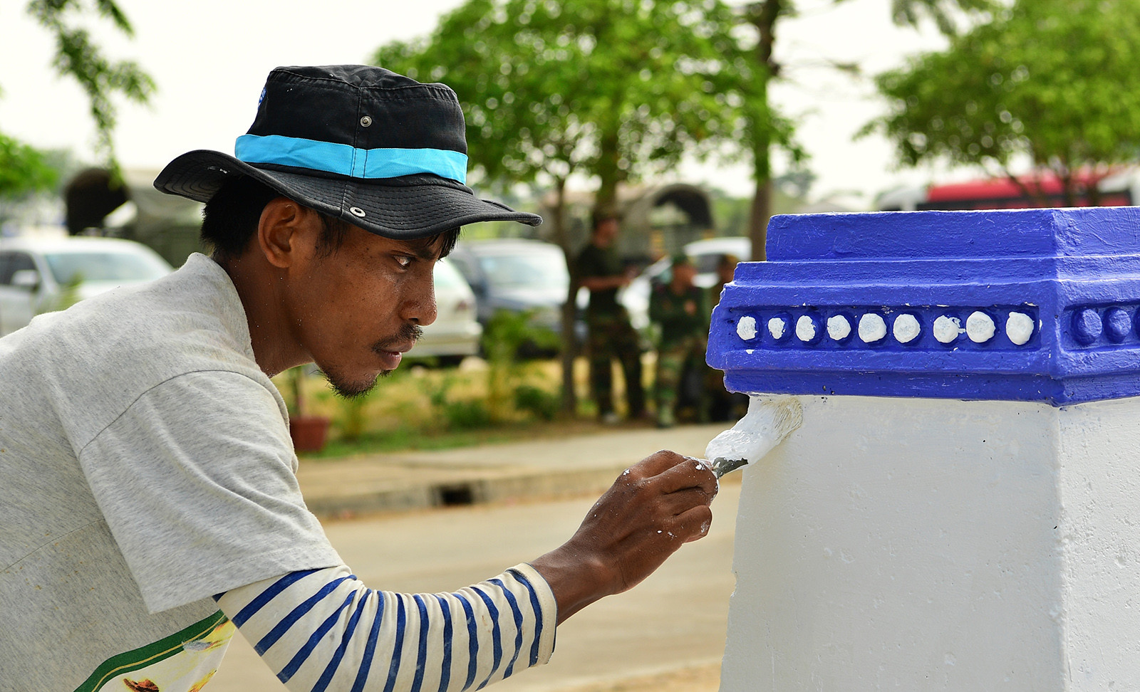 Thời tiết tại Phnom Penh khá khắc nghiệt với nhiệt độ lên đến 40 độ C. Điều này khiến công việc của các công nhân càng thêm vất vả. Hàng trăm lều bạt đã được dựng lên ở bên ngoài và khu hầm sân Morodok cho các công nhân ăn ngủ ngay tại nơi làm việc để đảm bảo tiến độ.