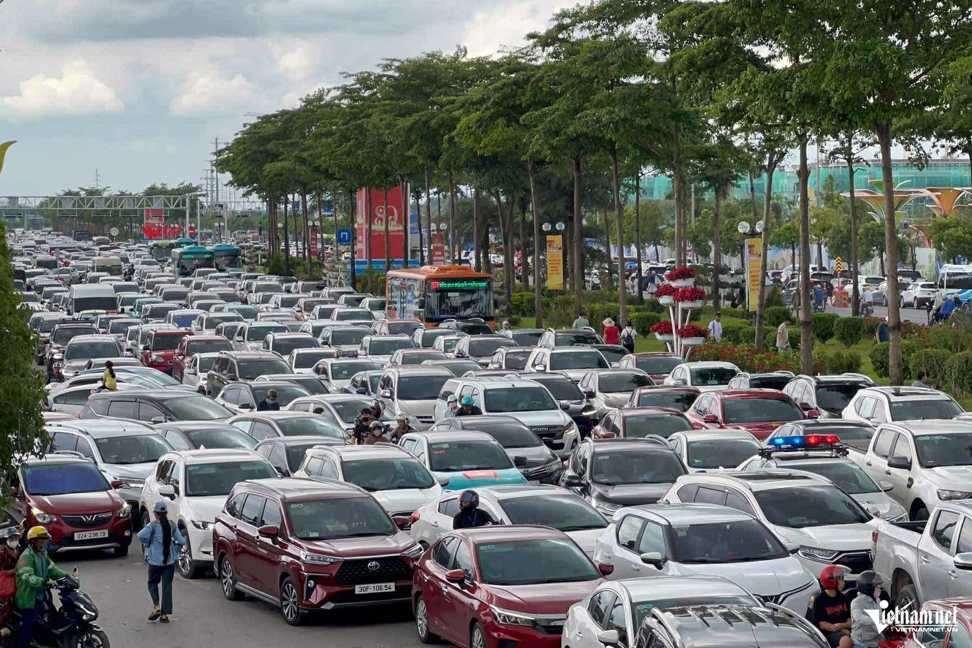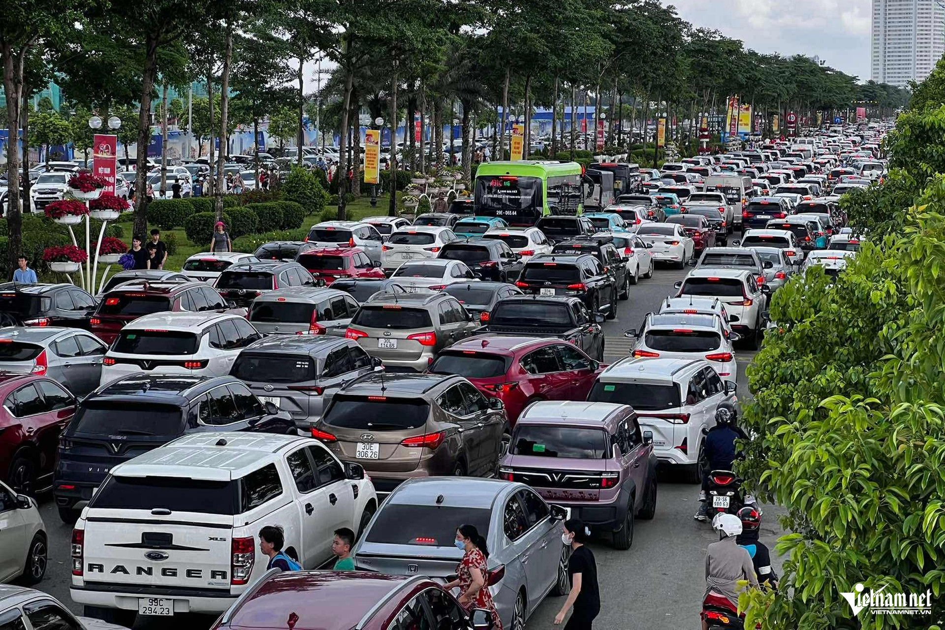 Do khu vực trước tuyến đường dẫn vào triển lãm, hàng nghìn ô tô nối đuôi nhau kéo dài gần 5 km khiến đoạn đường này ùn tắc. Đội CSGT đường bộ số 15 (Phòng CSGT Công an Hà Nội) đã điều các tổ công tác cùng xe chuyên dụng đến phân luồng, chống ùn tắc.
