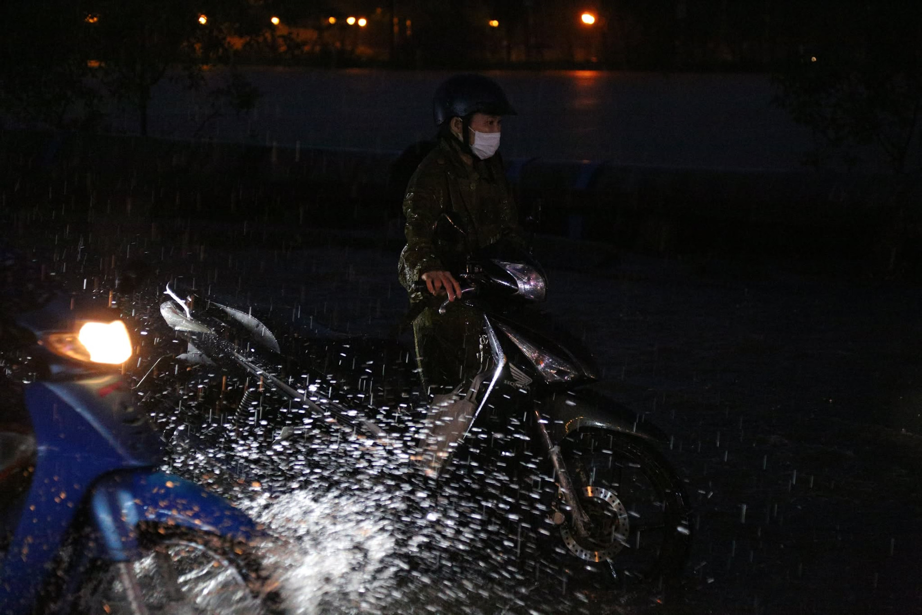 Chung tình cảnh, đường Quốc Hương (phường An Khánh) như sông vào giờ cao điểm. Người dân phải "rẽ sóng" để đẩy bộ xe chết máy về nhà sau một ngày làm việc.