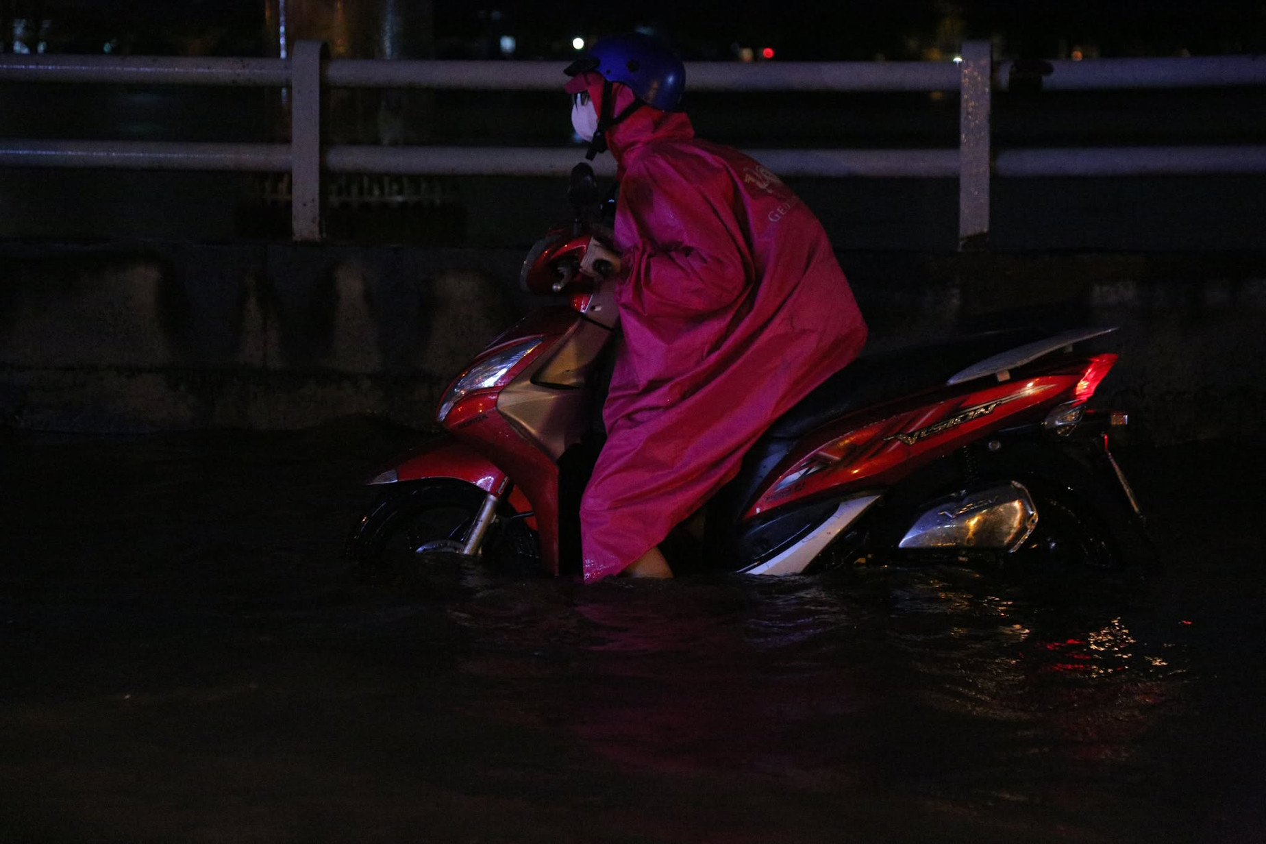 Phía Nam TPHCM, tuyến đường Trần Xuân Soạn, phường Tân Hưng ngập gần nửa mét, kéo dài gần 1km. Người dân cho biết tình trạng ngập đã bắt đầu từ 17h do mưa lớn kèm triều cường dâng cao.