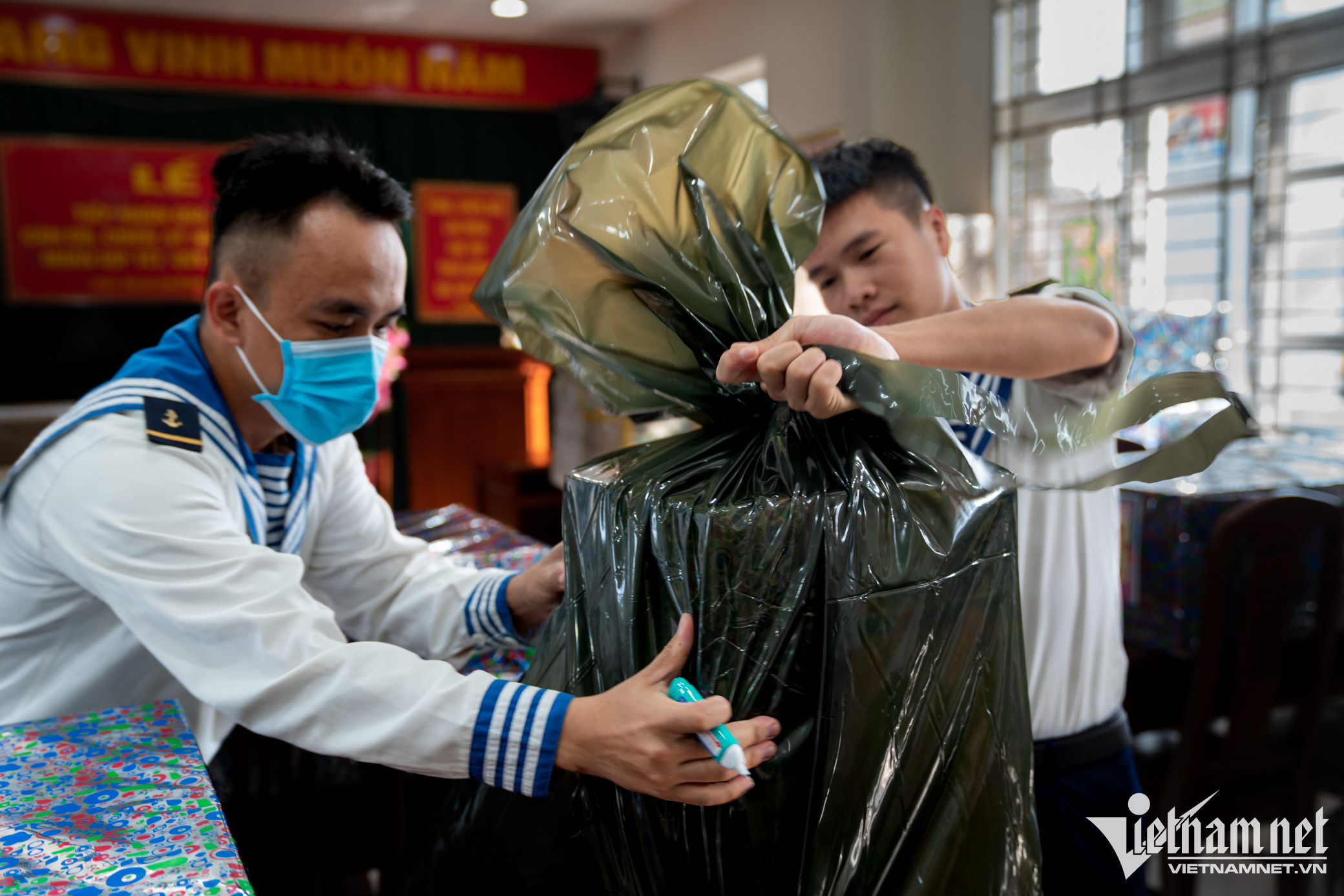 Sáng 25/12, tại Tiểu đoàn DK1 - thuộc Bộ Tư lệnh Vùng 2 Hải quân (TP Vũng Tàu, tỉnh Bà Rịa-Vũng Tàu), các chiến sĩ tất bật vận chuyển hàng hóa lên xe tải chuyên dụng của quân đội.