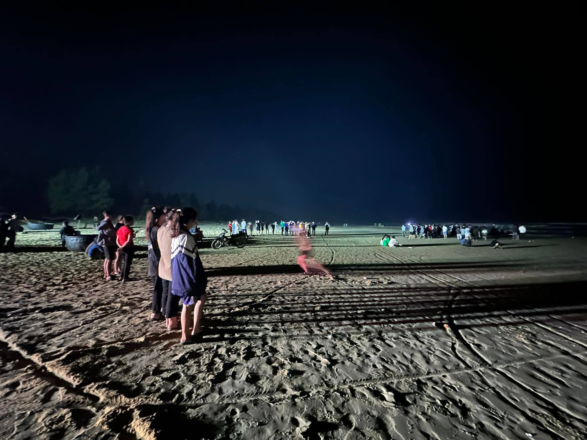 Hàng trăm người dân mang theo đèn pin đổ ra biển, phối hợp với lực lượng chức năng xuyên đêm tìm kiếm nạn nhân.