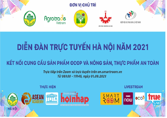 Sở Nông nghiệp và phát triển nông thôn thành phố Hà Nội phối hợp cùng một số cơ quan tổ chức Diễn đàn trực tuyến Hà Nội 2021 - Kết nối cung cầu sản phẩm OCOP và nông sản, thực phẩm an toàn.