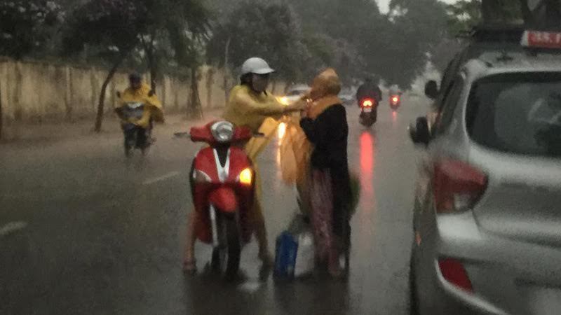 Hành động đẹp của cô gái giữa cơn mưa Hà Nội