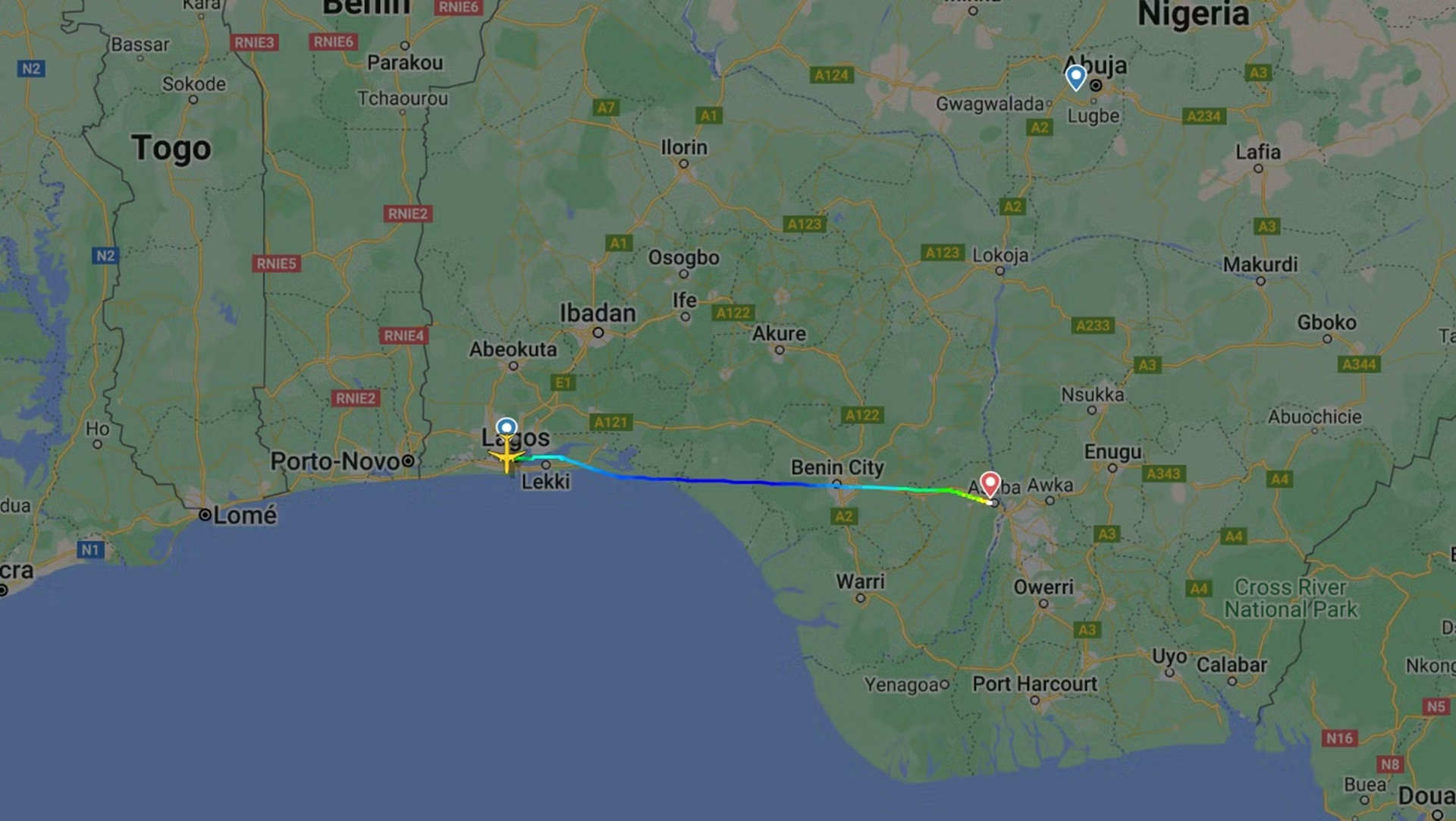 Hãng tin địa phương The Cable đưa tin, hôm 26/11, một chuyến bay của hãng hàng không United Nigeria Airlines cất cánh từ thành phố Lagos tới thủ đô Abuja của Nigeria. Tuy nhiên, chuyến bay lại hạ cánh xuống Asaba, một thành phố cách thủ đô Abuja của Nigeria hơn 300km.
