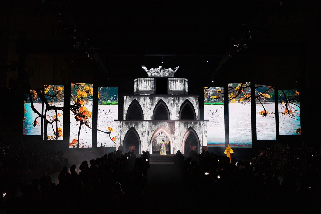 Tuần lễ thời trang quốc tế Việt Nam thu đông 2022 khơi nguồn cảm hứng thiết kế sân khấu đến từ nét đẹp di sản văn hóa Bắc Bộ nói riêng và Việt Nam nói chung. Đúng như chủ đề Taste Of Heritage (Cảm hứng di sản), Tháp Rùa - biểu tượng của thành phố nghìn năm văn hiến được tái hiện một cách tài tình và sáng tạo trên sân khấu chính.