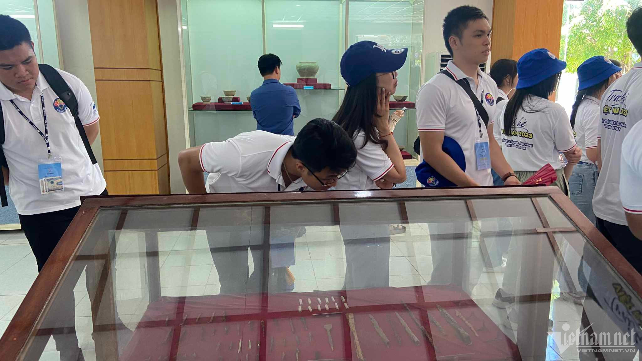 Những hiện vật như đầu rồng, đồ gốm, gạch… trong khu trưng bày ở khu vực ở Thành nhà Hồ gây ấn tượng với các bạn trẻ.