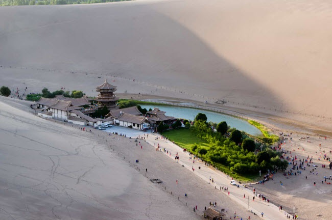 Nằm trên con đường tơ lụa cổ xưa, hồ Nguyên Nha Tuyền là một kỳ quan thiên nhiên 2.000 năm tuổi giữa sa mạc Gobi ở Trung Quốc.