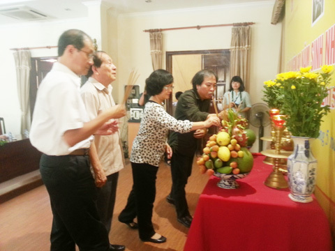 Các nhà văn thắp hương tưởng nhớ tới nhà văn Đoàn Giỏi |