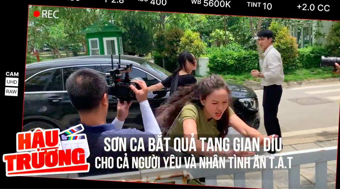 Trong lúc Cẩm Khê đang quàng cổ Quân tình cảm thì Sơn Ca (Quỳnh Kool) chạy xe tới. Quá tức giận khi chứng kiến cảnh này, cô cởi mũ bảo hiểm ném vào người Quân rồi xông vào đánh người yêu và thậm chí còn tát rồi đẩy ngã Cẩm Khê. Đoạn clip hậu trường kịch tính của phân đoạn này vừa được ê kíp tung ra.