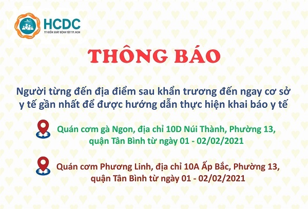 Liên quan bệnh nhân 2014 mắc Covid-19, ngành Y tế TP.HCM thông báo khẩn tìm người từng đến 2 quán cơm tại quận Tân Bình, yêu cầu nhanh chóng khai báo y tế.