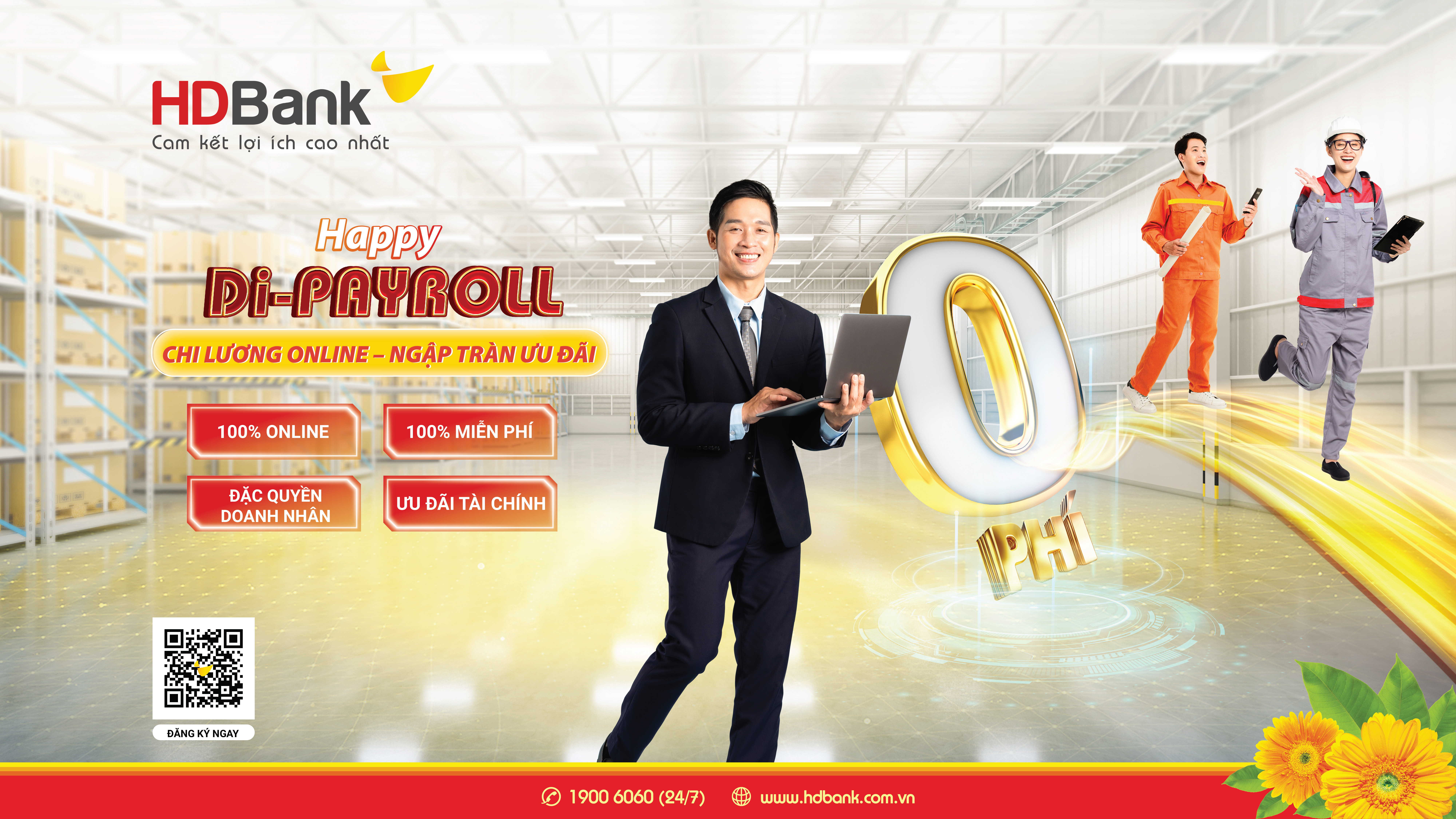 Theo đó, doanh nghiệp có thể tiết kiệm tối đa mọi chi phí thanh toán khi sử dụng gói chi lương của HDBank. Chỉ với 1 chạm qua gói Happy Di- Payroll sẽ giúp doanh nghiệp chi lương theo lô tiện lợi; miễn 100% phí (bao gồm phí chi lương, chuyển khoản, quản lý tài khoản, phí SMS, thường niên); tài trợ chi lương lên đến 6 lần tổng quỹ lương với lãi suất ưu đãi.