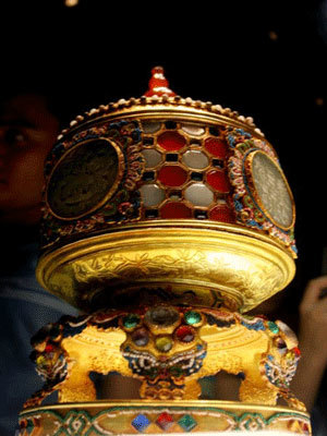 | Đài thờ làm bằng vàng và ngọc, nặng 4,3kg |