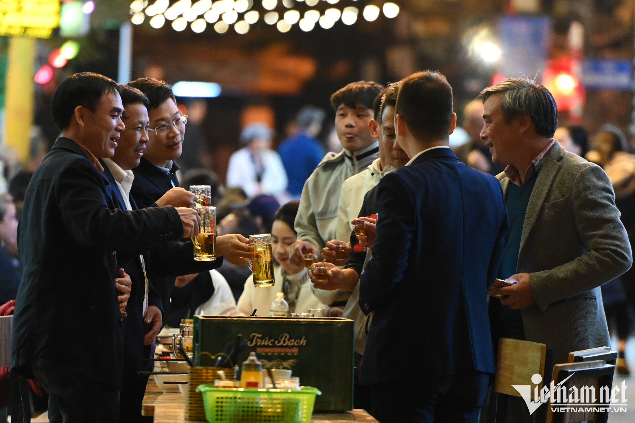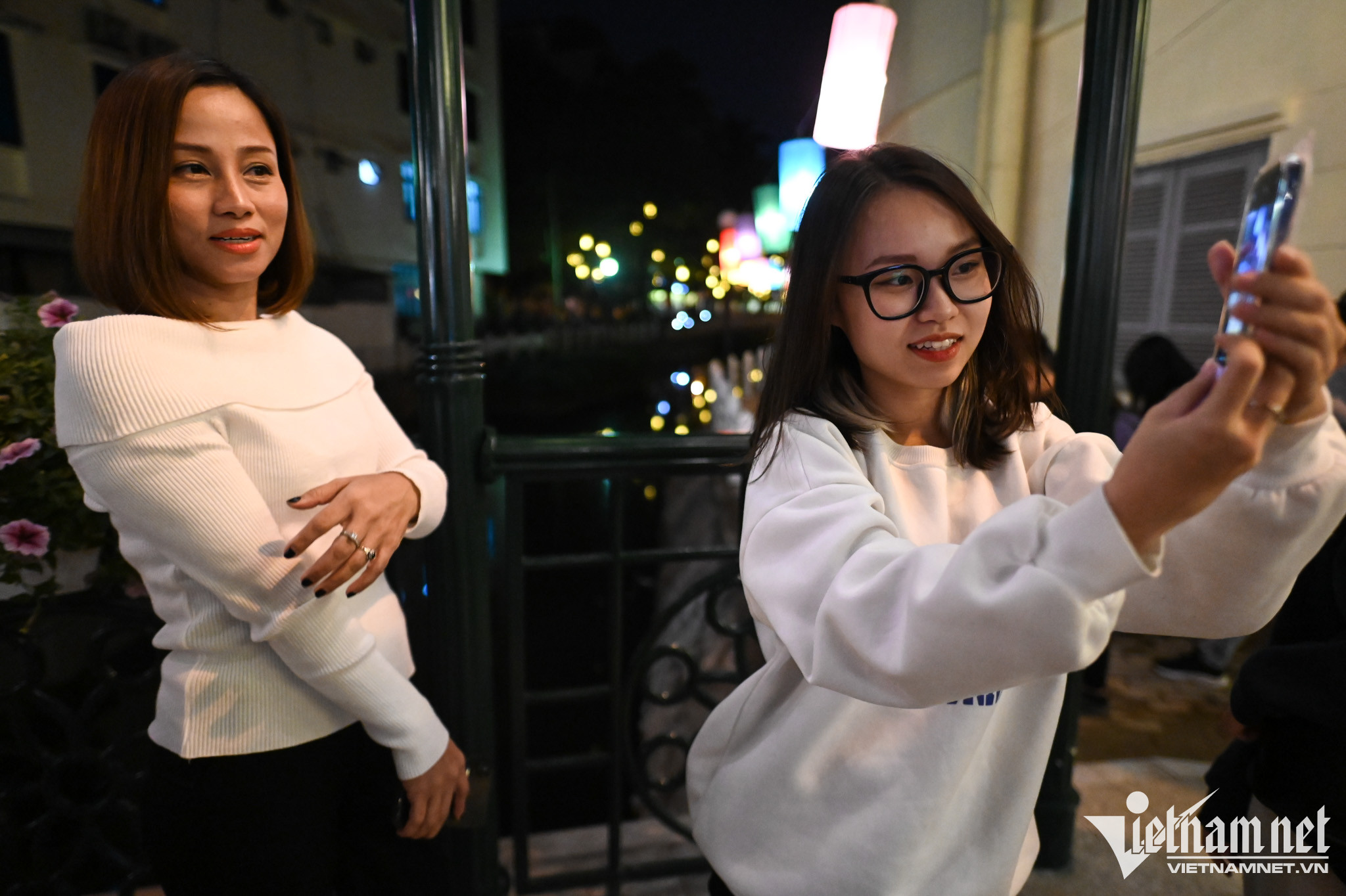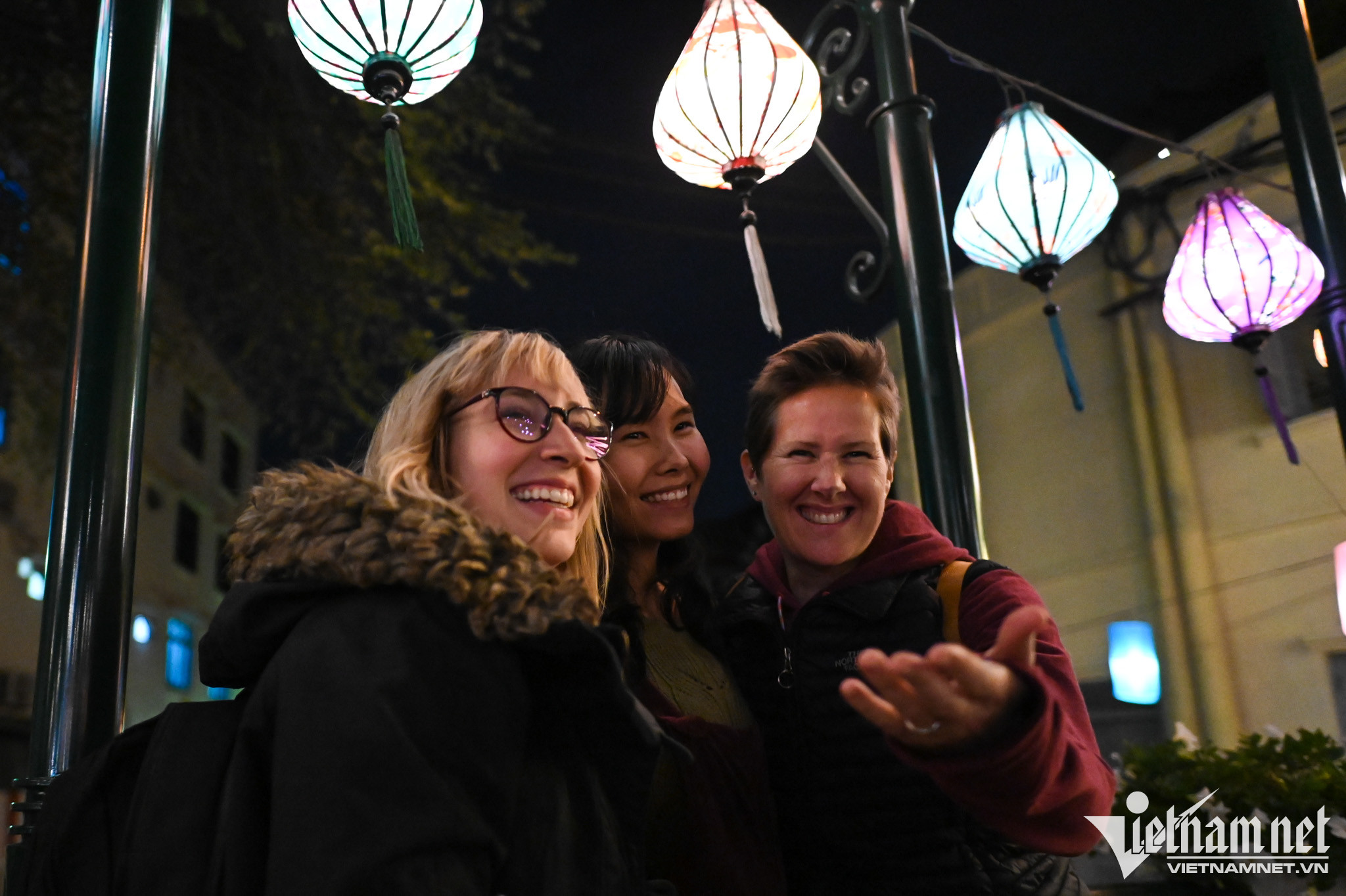 Du khách nước ngoài thích thú chụp ảnh check-in hoặc thưởng thức ẩm thực. Phố đi bộ Ngũ Xá bao quanh hồ Trúc Bạch, ngay sát hồ Tây, là nơi sinh sống và làm việc của nhiều du khách tại Việt Nam.