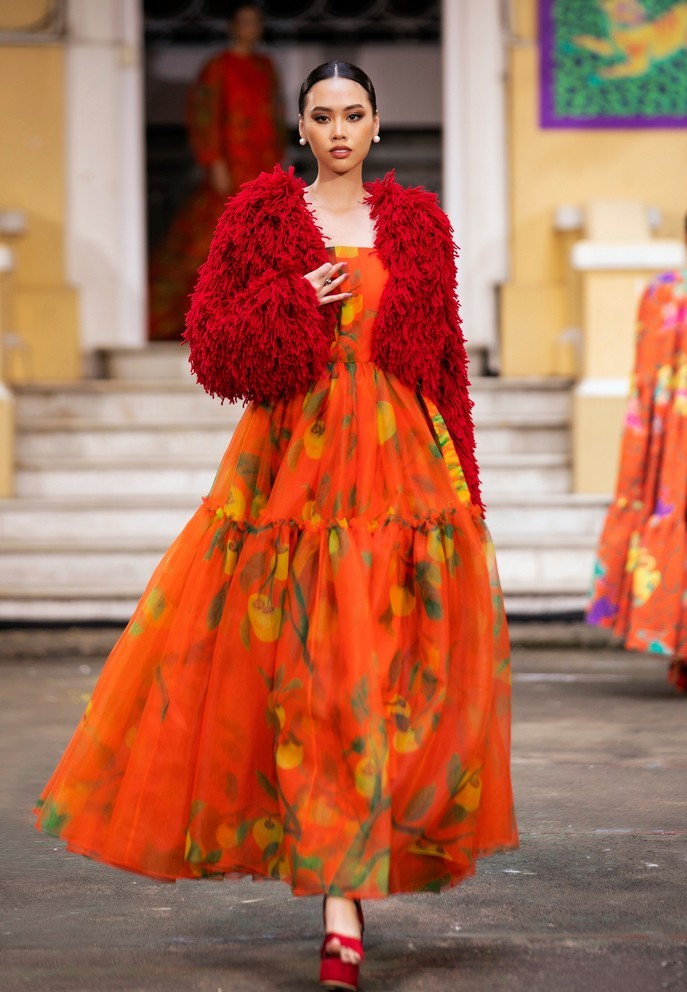 Loạt thiết kế cho phần đơn sắc với các tông đỏ, xanh, trắng và vàng. Đây đều là những gam màu mùa lễ Tết, được sáng tạo đa dạng kiểu dáng, chất liệu thích hợp cho những thời tiết khác nhau trên từng vùng miền cả nước.