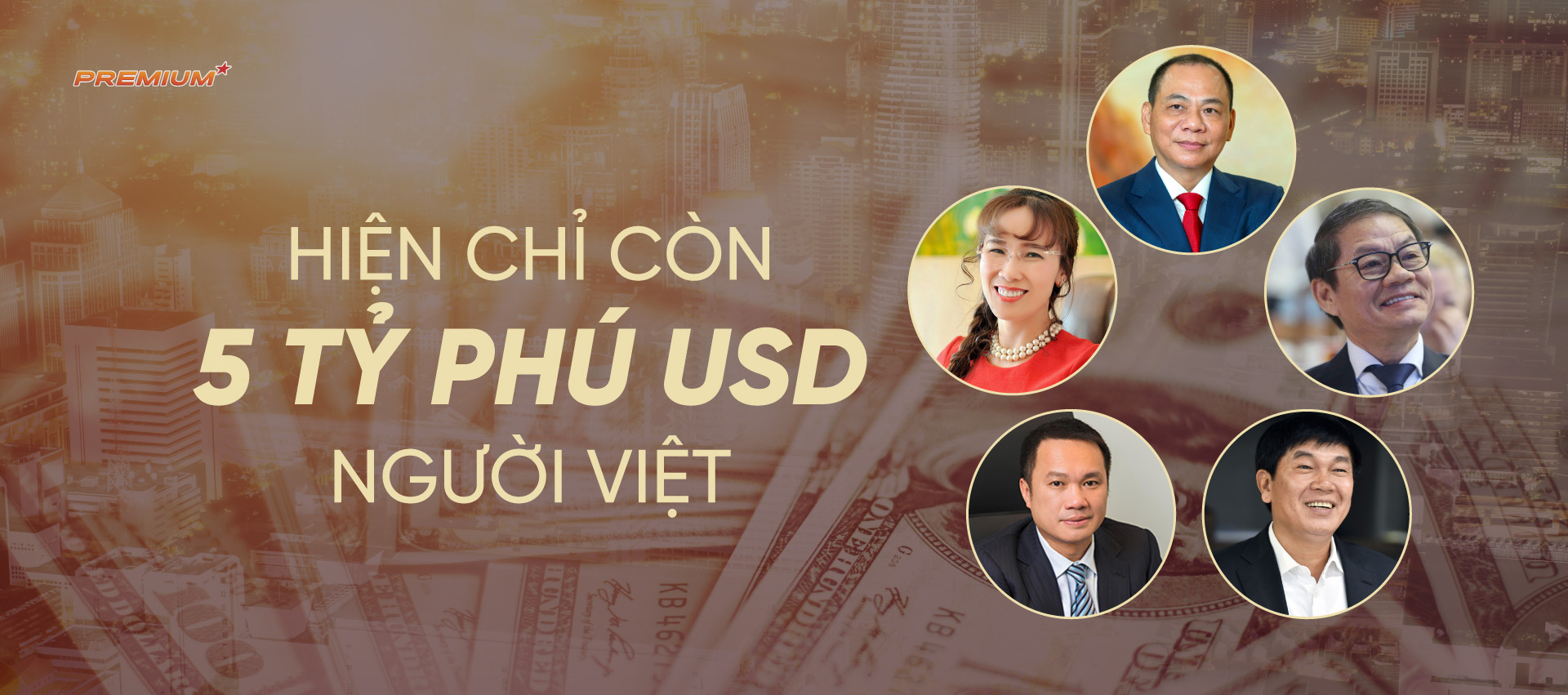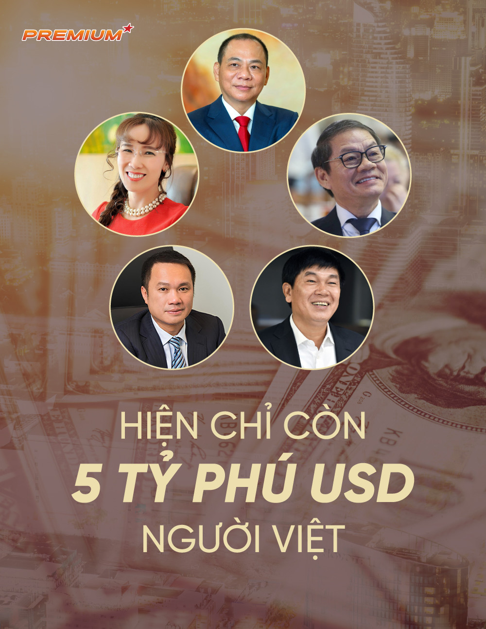 Tính tới ngày 22/1, theo Forbes, Việt Nam có 5 tỷ phú USD với tổng tài sản đạt 12,2 tỷ USD. Trước đó, cuối năm 2024, Việt Nam vẫn có 6 tỷ phú USD với tổng tài sản đạt 13,4 tỷ USD.
