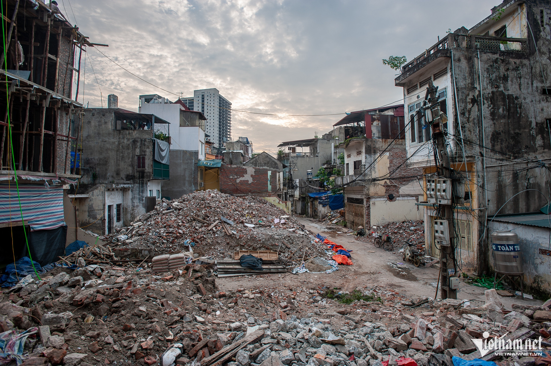 Nhiều căn nhà nằm sâu trong ngõ nhỏ nhưng sắp tới sẽ biến thành "đất vàng" khi con đường mới sẽ mở ngang qua. Ngồi thư giãn cuối ngày giữa sân nhà nằm sâu trong khu dân cư thuộc phường Ô Chợ Dừa, bà Đoàn Thị Xuân (70 tuổi) cho biết, khi đó diện tích nhà bà sẽ còn lại khoảng 40m2. "Sinh sống ở đây đã hơn 50 năm, gia đình tôi hiện có 10 người, gồm 4 thế hệ, chuyển đi cũng không nỡ mà ở lại thì lại không quen cảnh chật chội".