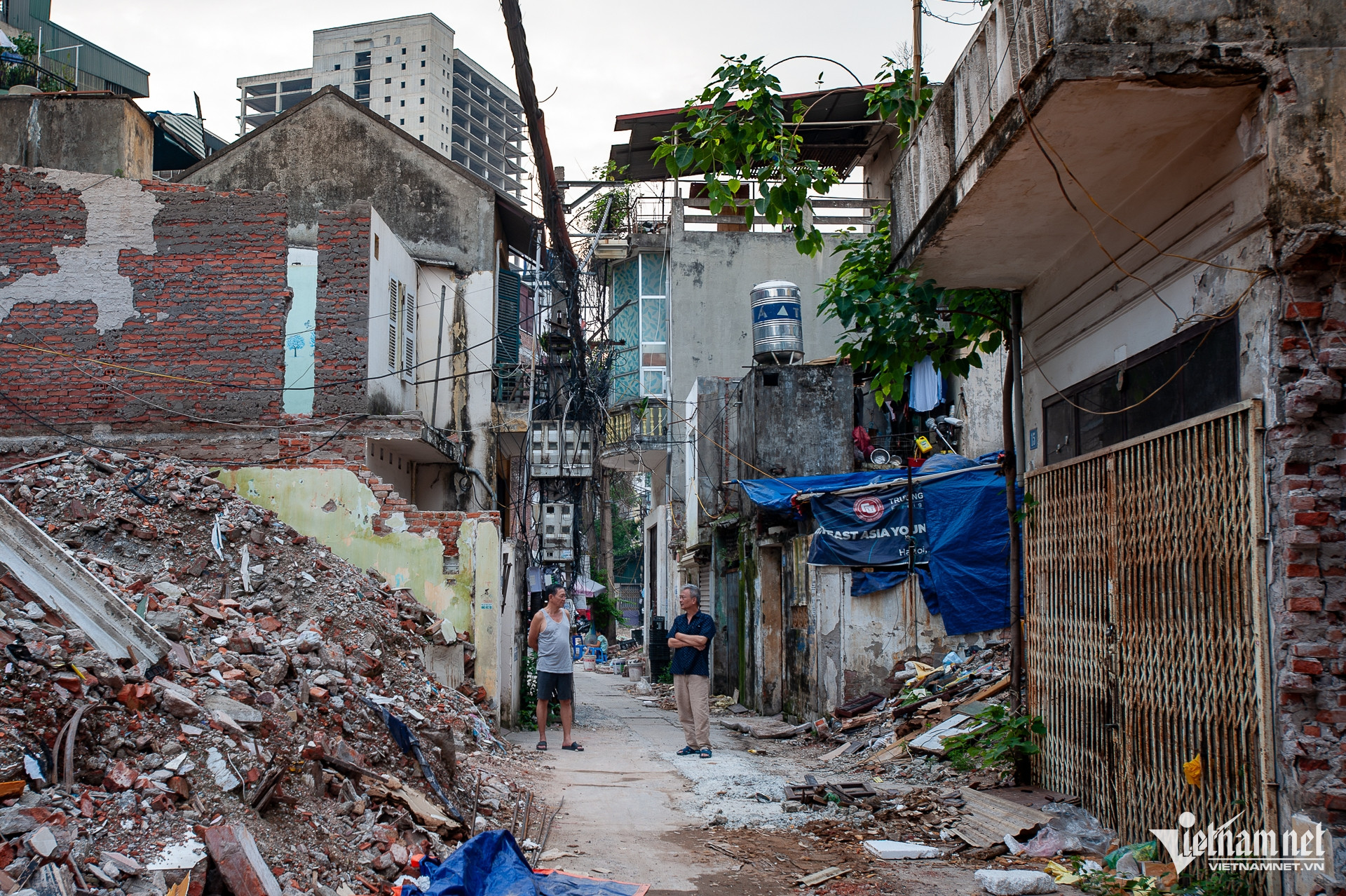 Hiện nhiều ngôi nhà nằm sâu trong ngõ nhỏ, khu đông dân cư, chồng tầng lên nhau, đang lần lượt được phá dỡ từng tầng, đảm bảo an toàn và hạn chế bụi, tiếng ồn.