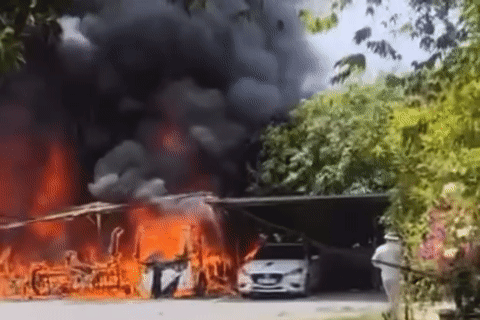 "Phát hiện đám cháy, chúng tôi không dám lại gần vì lửa lan nhanh, bốc cháy ngùn ngụt kèm theo nhiều tiếng nổ lớn", một người dân chứng kiến cho hay.