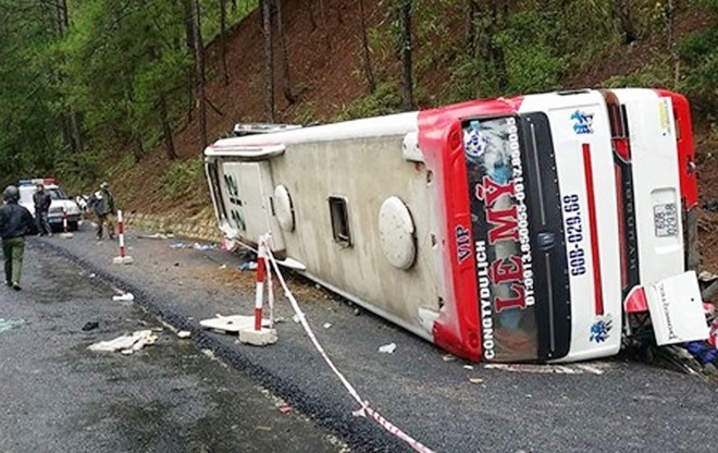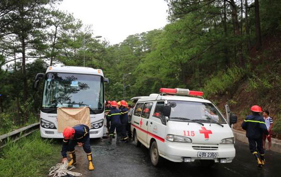 Xe 52 chỗ đang xuống đèo Prenn từ hướng Đà Lạt về TP HCM đã tông vào ôtô khách sau khi gây tai nạn với một công nhân làm việc ven đường, khiến 7 người tử nạn.