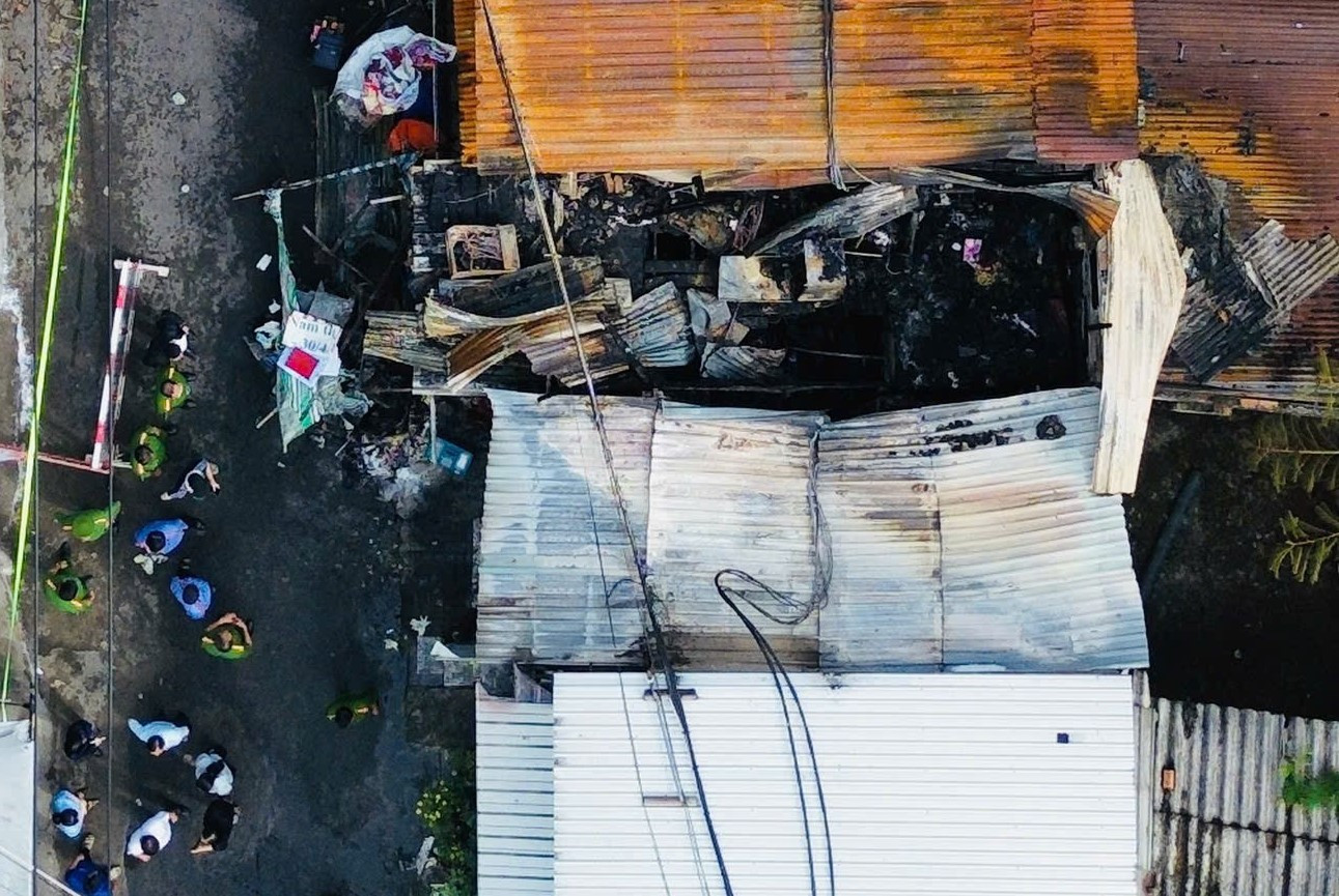 Tổ cảnh sát đến hiện trường tổ chức khám nghiệm, điều tra nguyên nhân vụ cháy.
