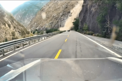 Hàng nghìn khối đất đá sạt lở rơi xuống đường, tài xế hốt hoảng lùi xe bỏ chạy