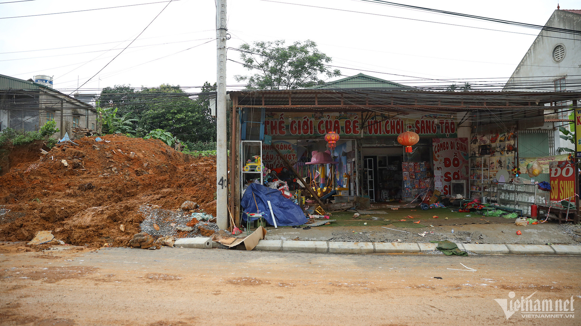 Cũng theo ghi nhận, cốt nền của nhà hàng xóm cao khoảng 4m, đất đã ngấm no nước mưa làm xô dãy tường dài 20m, cao khoảng 4m.
