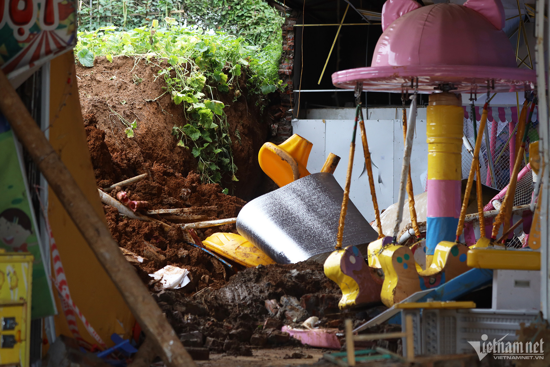 Cơ quan chức năng cũng xác định nguyên nhân ban đầu do nền đất nhà hàng xóm cao gần bằng mái nhà ông T.V.V. nên khi có mưa lớn làm đổ dãy tường. Tường và đất đá đã vùi lấp khu vui chơi bên trong nhà ông T.V.V. Công an huyện Ba Vì tiếp tục điều tra nguyên nhân sự việc.