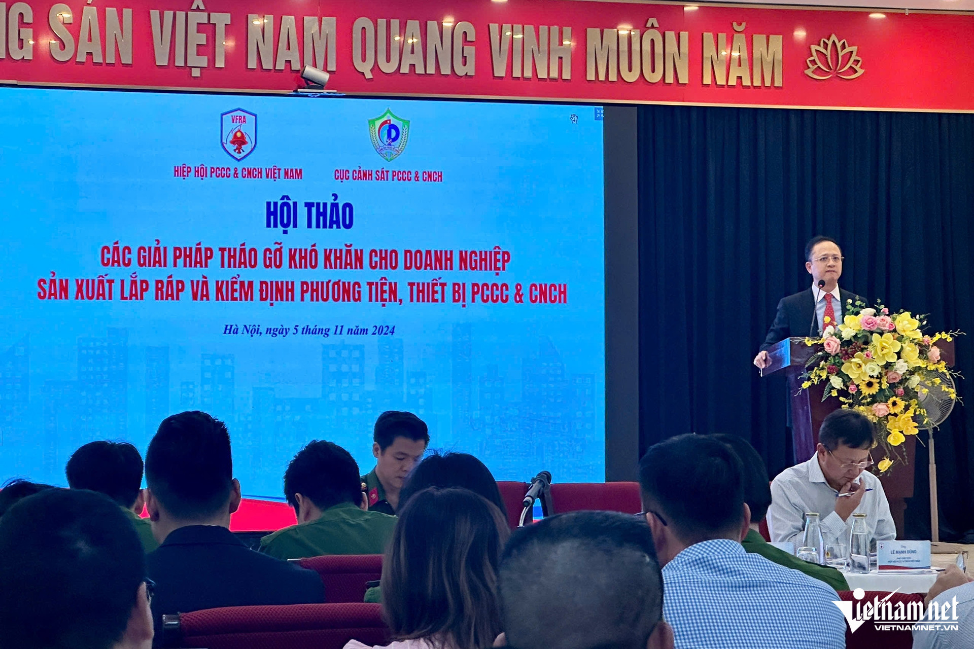 Chiều 5/11, Hiệp hội PCCC & CNCH Việt Nam (VFRA) đã phối hợp với Cục Cảnh sát PCCC&CNCH (C07, Bộ Công an) tổ chức Hội thảo “Các giải pháp tháo gỡ khó khăn cho doanh nghiệp sản xuất lắp ráp và kiểm định phương tiện, thiết bị PCCC&CNCH” với hình thức trực tiếp và kết nối với hơn 80 doanh nghiệp sản xuất lắp ráp, kiểm định phương tiện, thiết bị PCCC&CNCH trên cả nước.