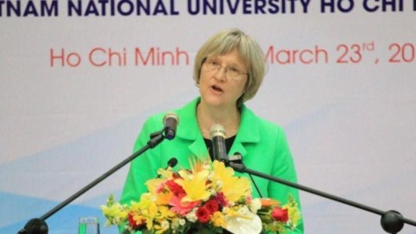 Giáo sư Drew Gilpin Faust, Hiệu trưởng ĐH Harvard, Mỹ đã có buổi thuyết trình với sinh viên và giảng viên Trường ĐH Khoa học Xã hội và Nhân văn, ĐHQG TP.HCM, vào sáng nay 23/3.