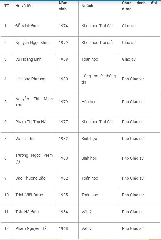 Danh sách các nhà giáo thuộc Trường ĐH Khoa học tự nhiên được Hội đồng Giáo sư nhà nước công nhận đạt tiêu chuẩn chức danh giáo sư, phó giáo sư năm 2022: