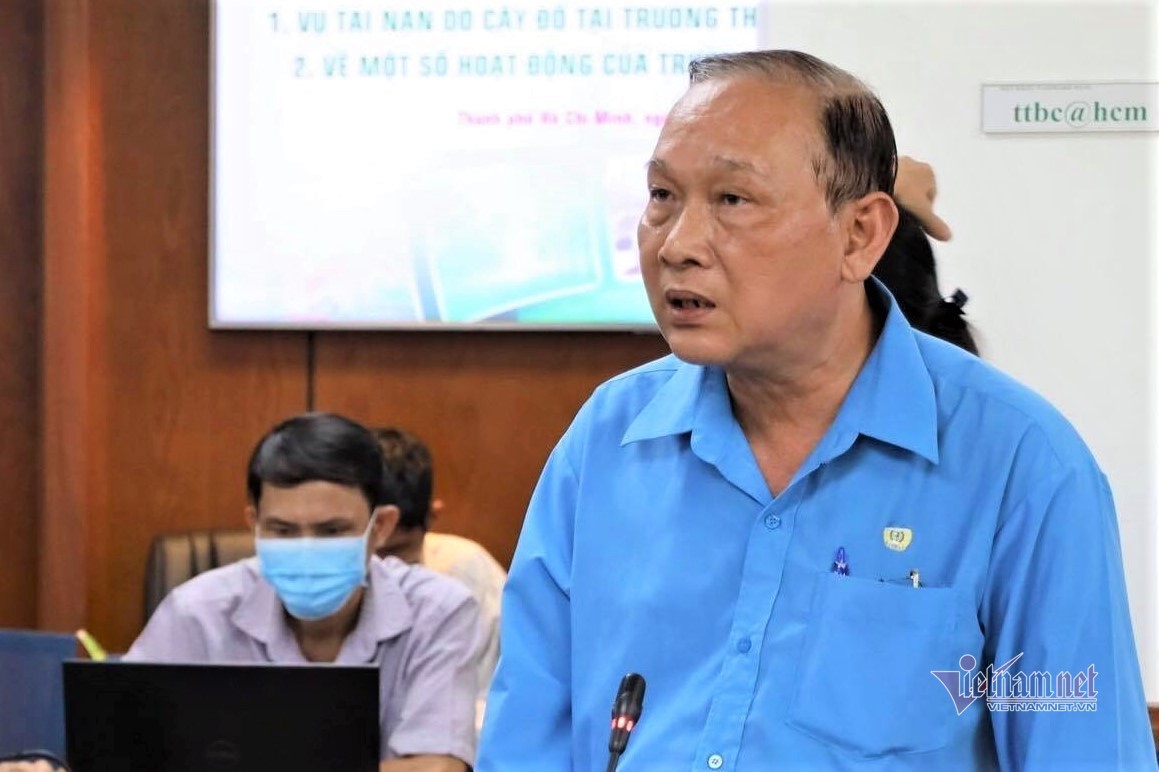 | Ông Nguyễn Vạn Phúc, Hiệu trưởng THCS Bạch Đằng (quận 3, TP.HCM) nhận trách nhiệm về việc cây phượng trong trường đổ khiến nhiều học sinh bị thương |