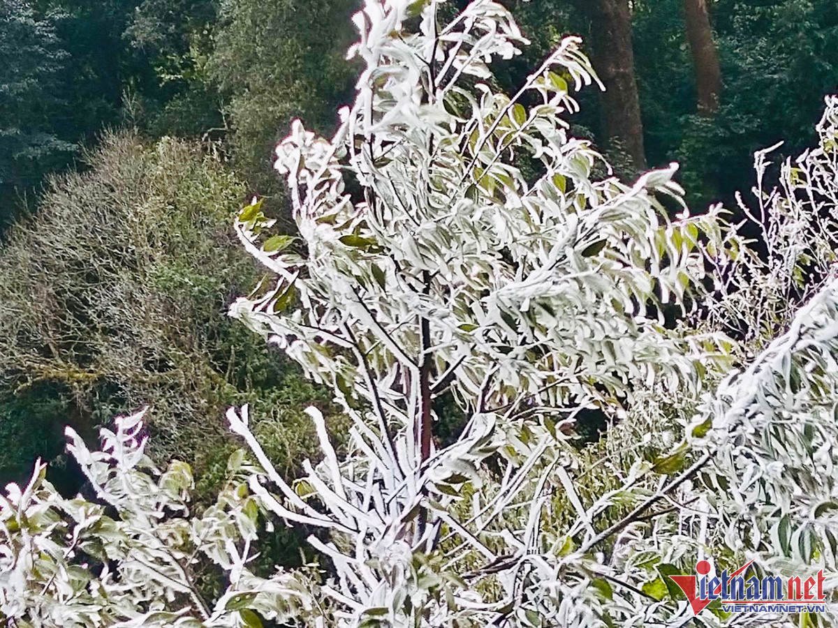 Hình ảnh băng tuyết phủ trắng trên cây cối ở huyện biên giới Kỳ Sơn hôm nay: