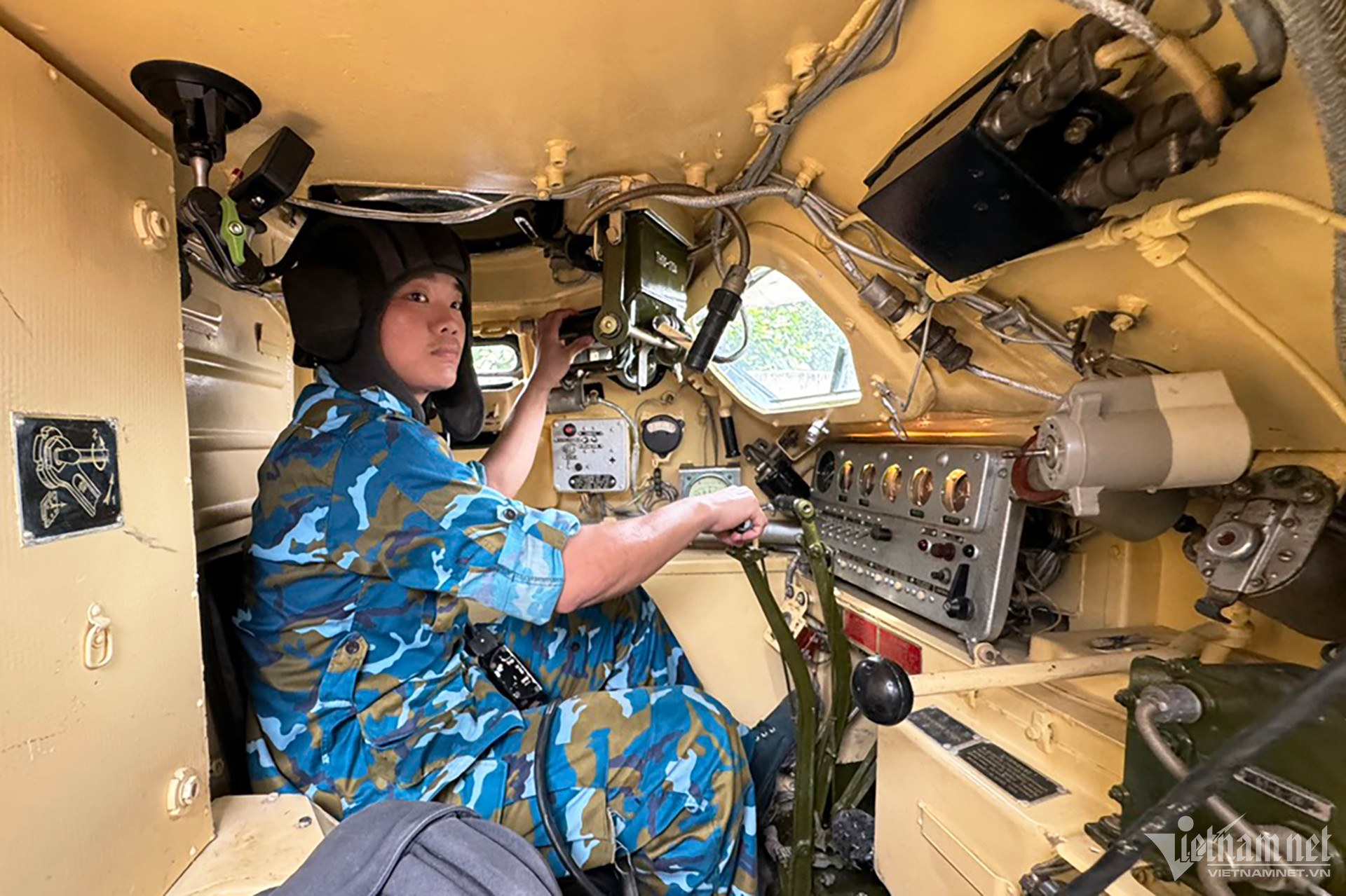 Chỉ trong ít phút, kíp vận hành đã sẵn sàng triển khai khí tài ra khu vực công sự. Trưởng xe dùng thiết bị thông tin liên lạc để trao đổi với Sở Chỉ huy, Pháo thủ liên tục sục sạo bám sát mục tiêu.