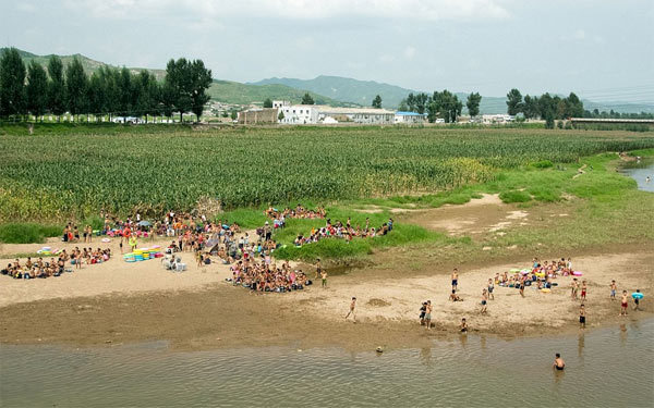 Hàng trăm trẻ nhỏ tập trung để bơi sông ở một vùng nông thôn Bình Nhưỡng. (Ảnh: Getty) |