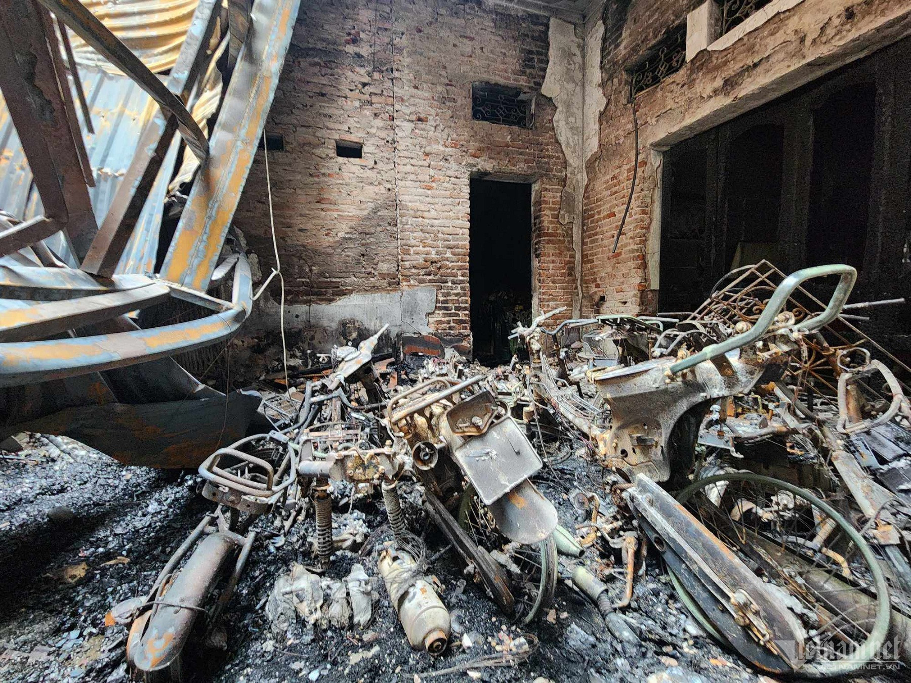Thời điểm này, đám cháy đã phát triển mạnh thiêu rụi nhiều xe máy, xe đạp điện, xe đạp tại khu vực sân, khói và khí độc bao trùm toàn bộ khu vực cháy.