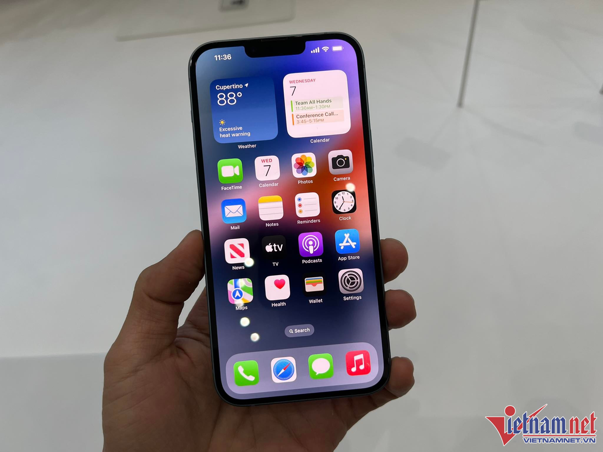 iPhone 14 Pro và 14 Pro Max dùng màn hình 6.1 inch và 6.7 inch, viền máy mỏng hơn, độ sáng tối đa 2.000 nit đối với một số video. Màn hình always-on chính thức có mặt trên iPhone nhờ vào các công nghệ như tần số quét 1Hz hay tự động làm tối nền.