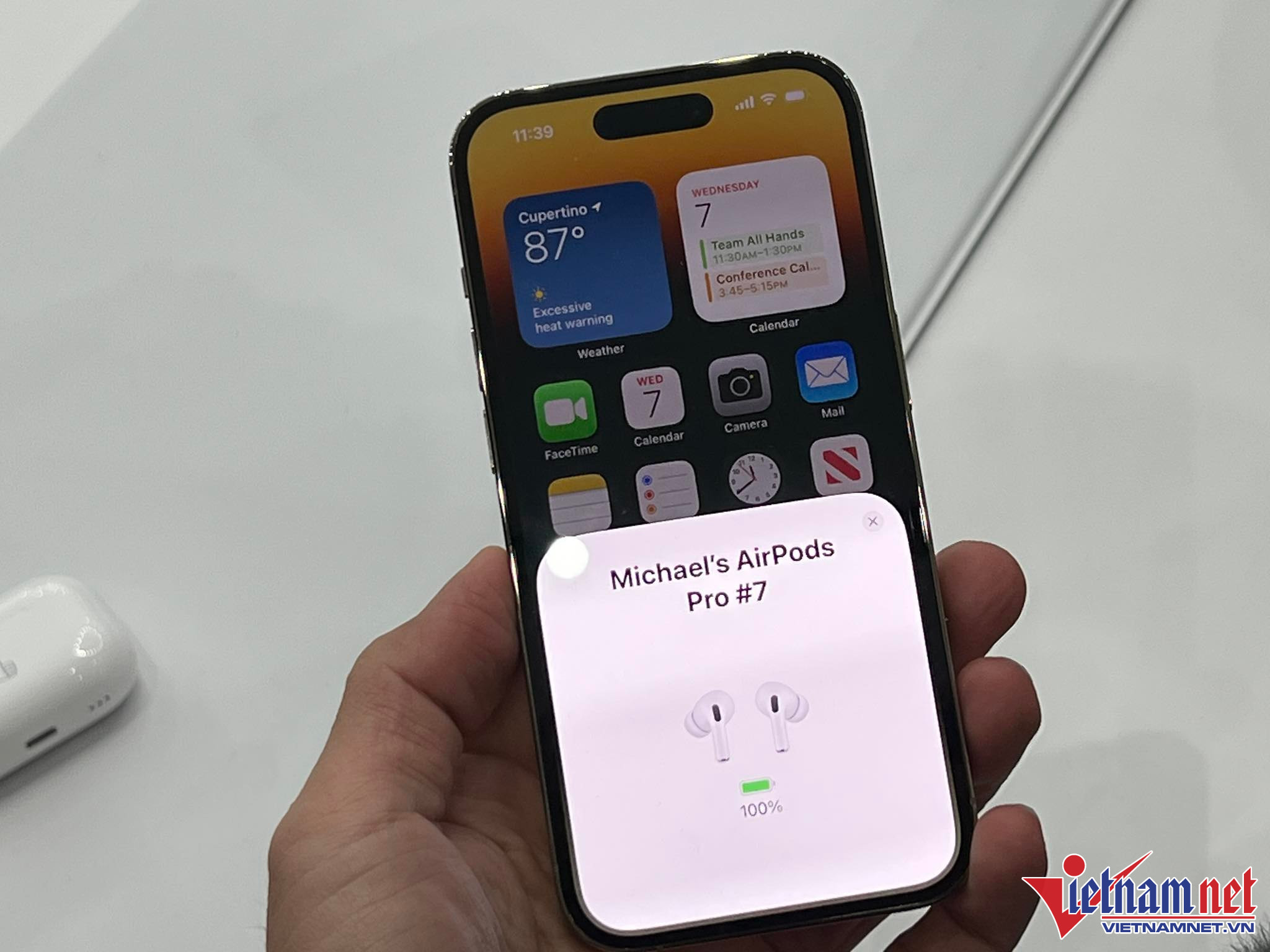 Hình ảnh cận cảnh phần khuyết trên màn hình iPhone 14 Pro cho thấy thay đổi trong thiết kế. Phần khuyết có dạng viên nhộng nhỏ hơn tai thỏ một chút và đặc biệt nhất là có thể chuyển động. Giao diện thông báo mới trên thiết bị có tên Dynamic Island. Mỗi khi có thông báo mới, Dynamic Island sẽ mở rộng ra để hiển thị.