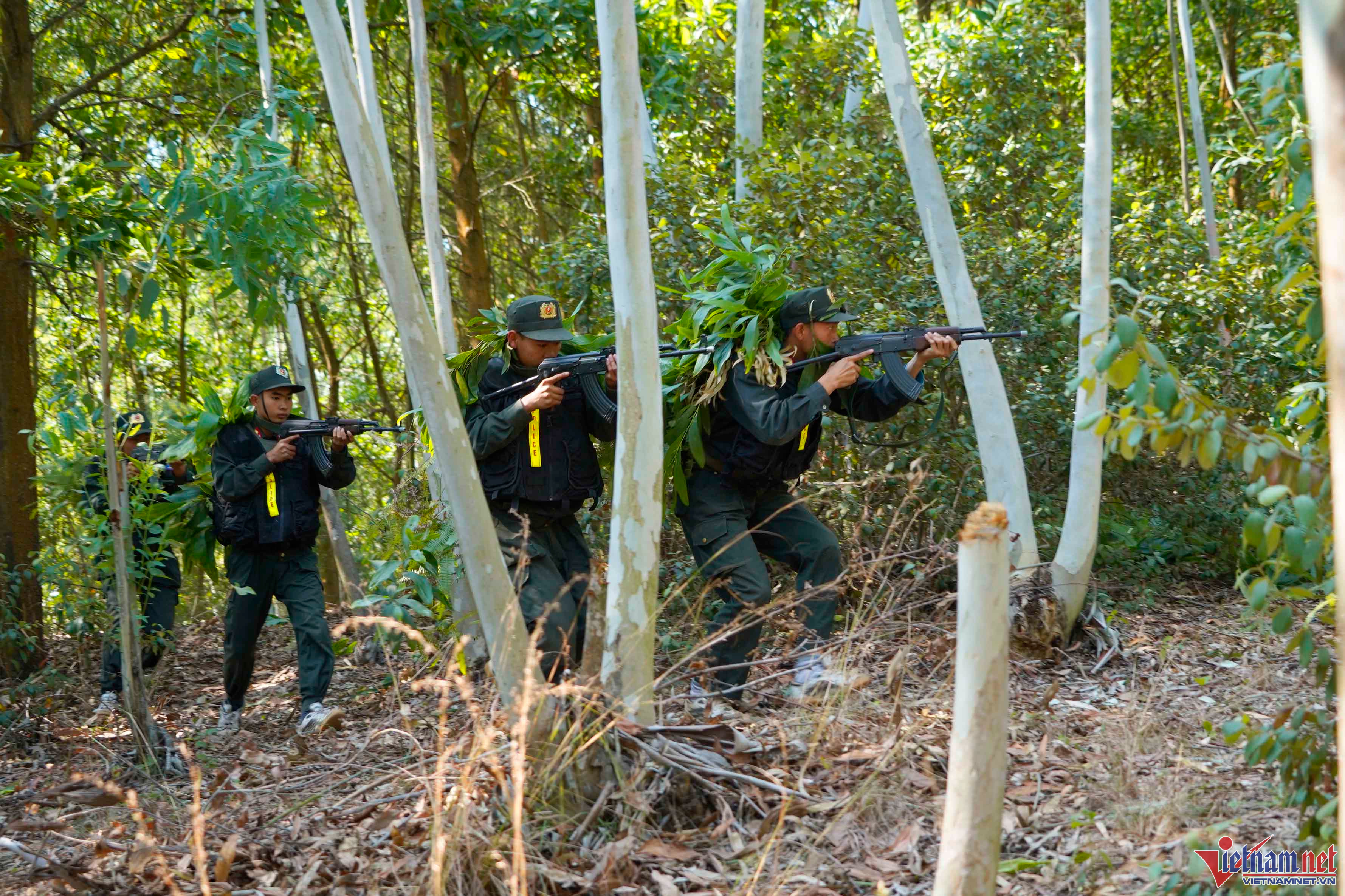 Nhiều chiến sĩ ngụy trang thành cây cối, bôi bùn đất toàn bộ cơ thể rồi ẩn mình trong đầm lầy, bụi cây để luyện tập các bài phục kích truy bắt đối tượng khủng bố.